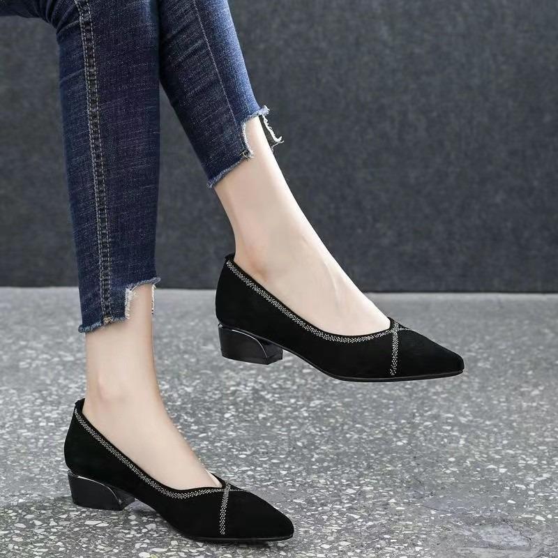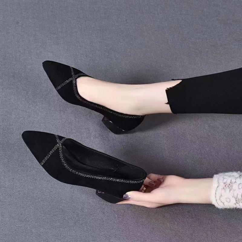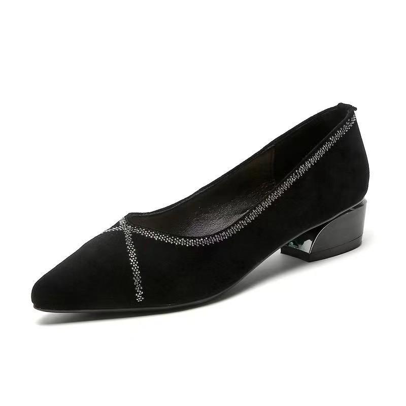 Неглубокие туфли-лодочки со стразами, женские, весна-осень, новые, с острым носком, на толстом каблуке, туфли для мамы, замшевые, на низком каблуке, удобные сетчатые женские туфли