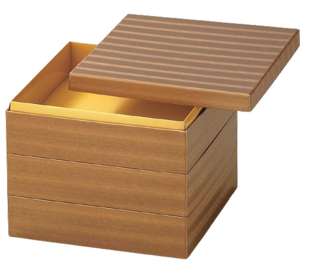 Коробка для бэнто для отдыха, сделано в Японии, 3 уровня, размеры, японская бумага, маленькая волна, золото xx J-kitchens (Bento Box) 6.5 20.0см 20.0см 17.6см
