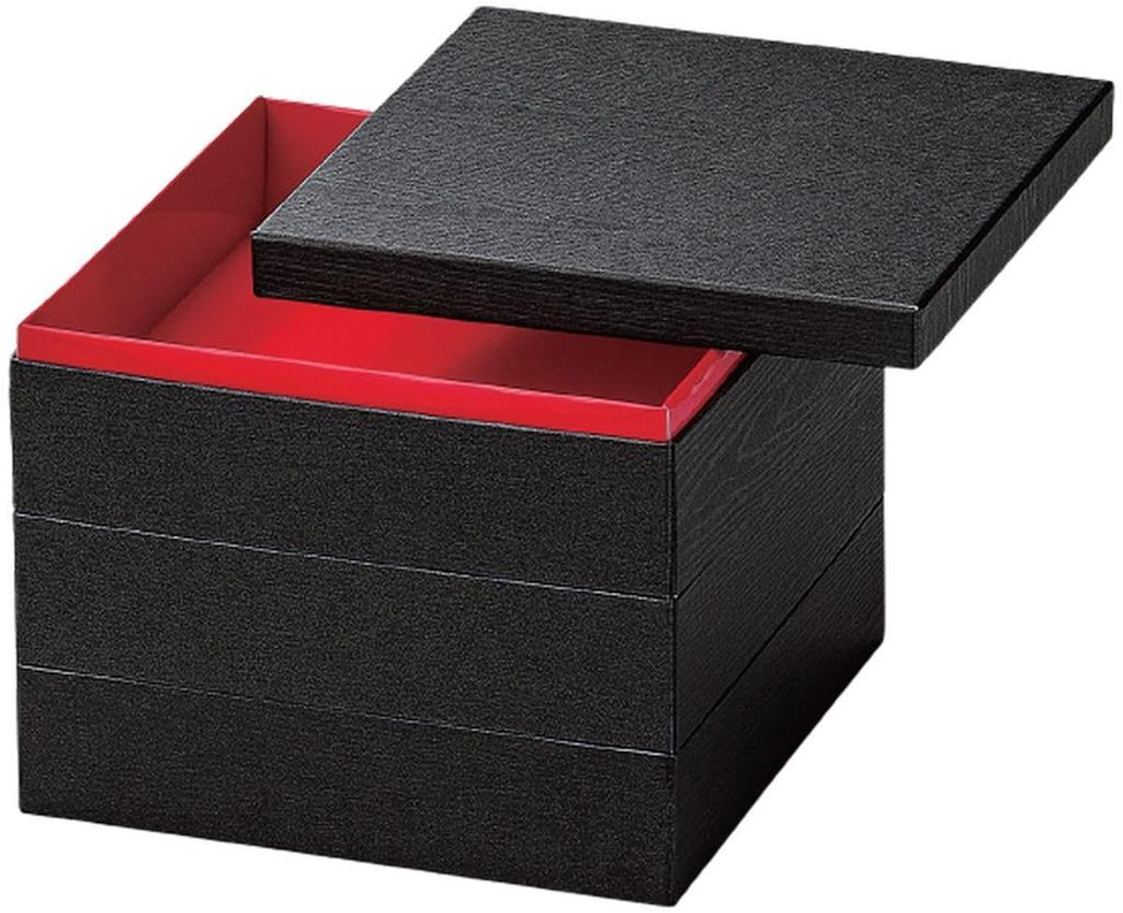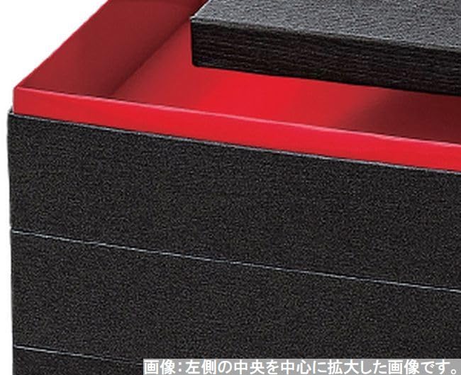 Outdoor Lunch Box Made in 3 Washi Black Wood Grain x x J-kitchens (Lunch Box) Japan, Tiers, 6.5 inches, Paper, Interior, Red, 20.7cm 20.7cm 17.0cm