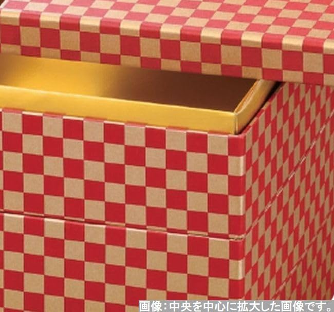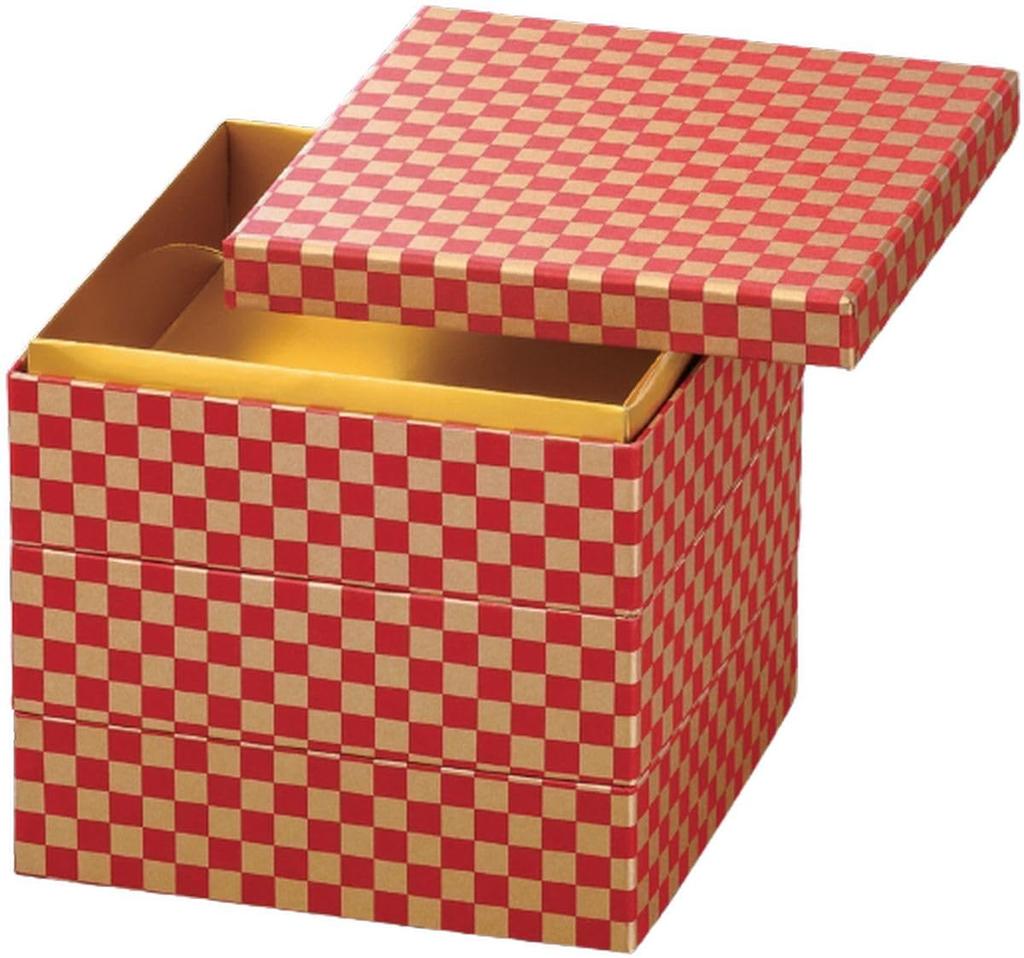 Outdoor Lunch Box Made in 3 Washi Red and Gold Checkered x x J-kitchens (Lunch Box) Japan, Tiers, 6-inch, Paper, Pattern, 19.0cm 19.0cm 17.6cm