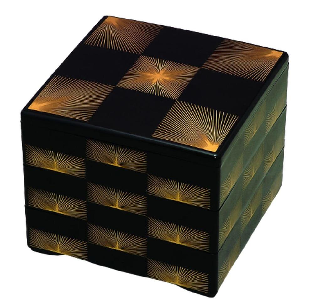 Outdoor Lunch Box Made in 3 Irodori Heavy Black Pine Needle Checkered x x J-kitchens (Lunch Box) Japan, Tiers, 6.5 inches, Pattern, 19.5cm 19.5cm