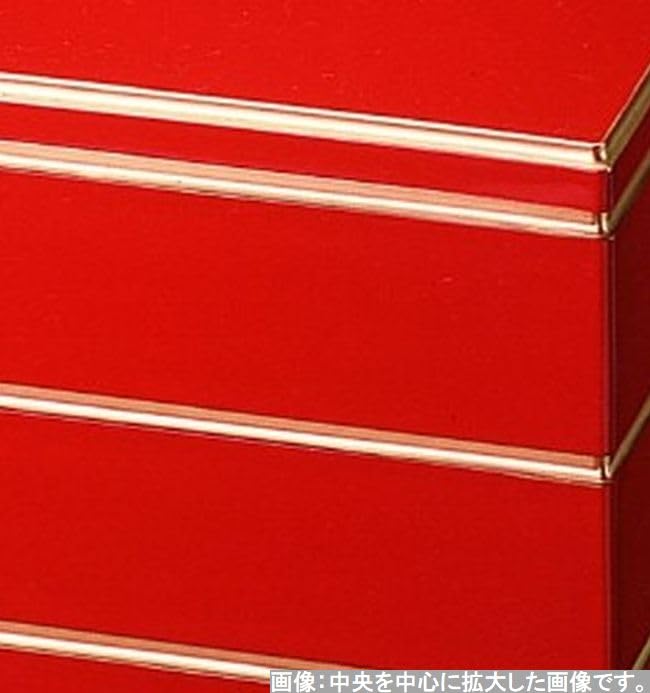 Jubako with Red and Gold x x Made in Japan J-Kitchens 3-Tiered 5-inch (Stacked Box) Rims, 15.1cm 15.1cm 15.7cm,