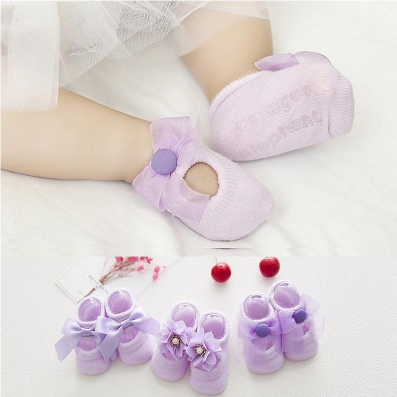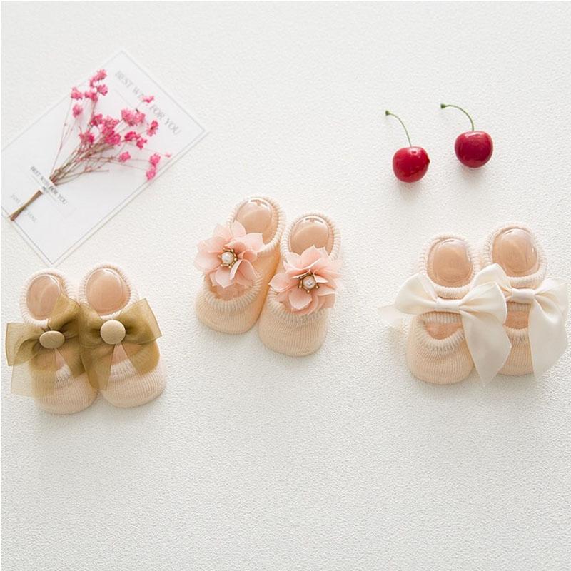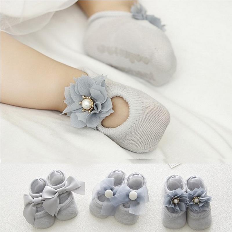 1 пара хлопковых кружевных носков с бантом для маленьких девочек, скользких носков, носков