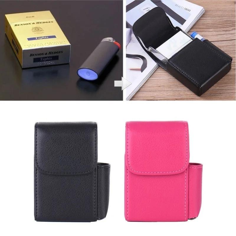 Stainless Steel + PU Leather Cigarette Case with Lighter Pocket Cigarette Pack Convenient Storage Bag Waterproof PVC Bag