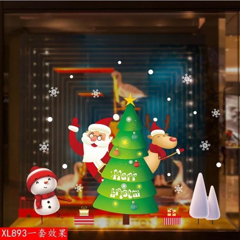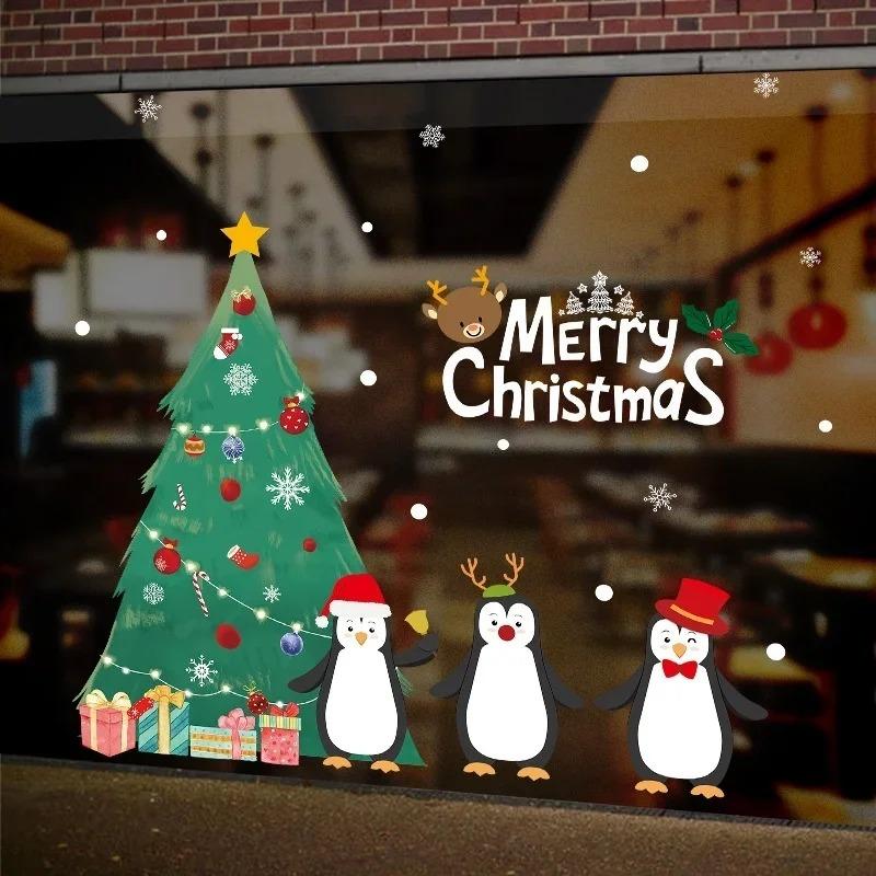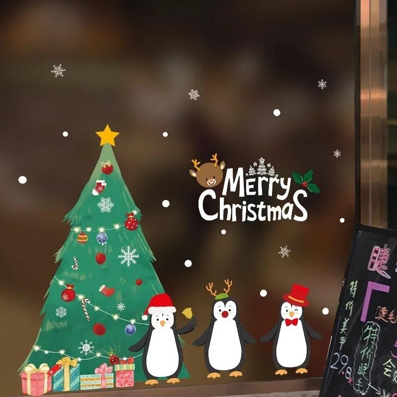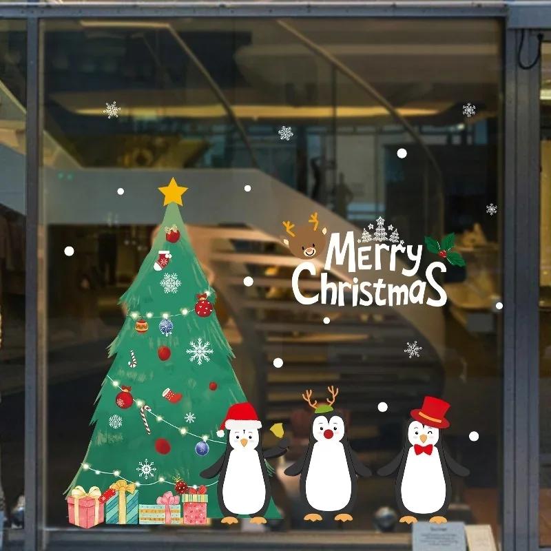 Рождественские украшения Пингвин сани мультфильм лось снеговик дверь наклейка окно стекло стена наклейка