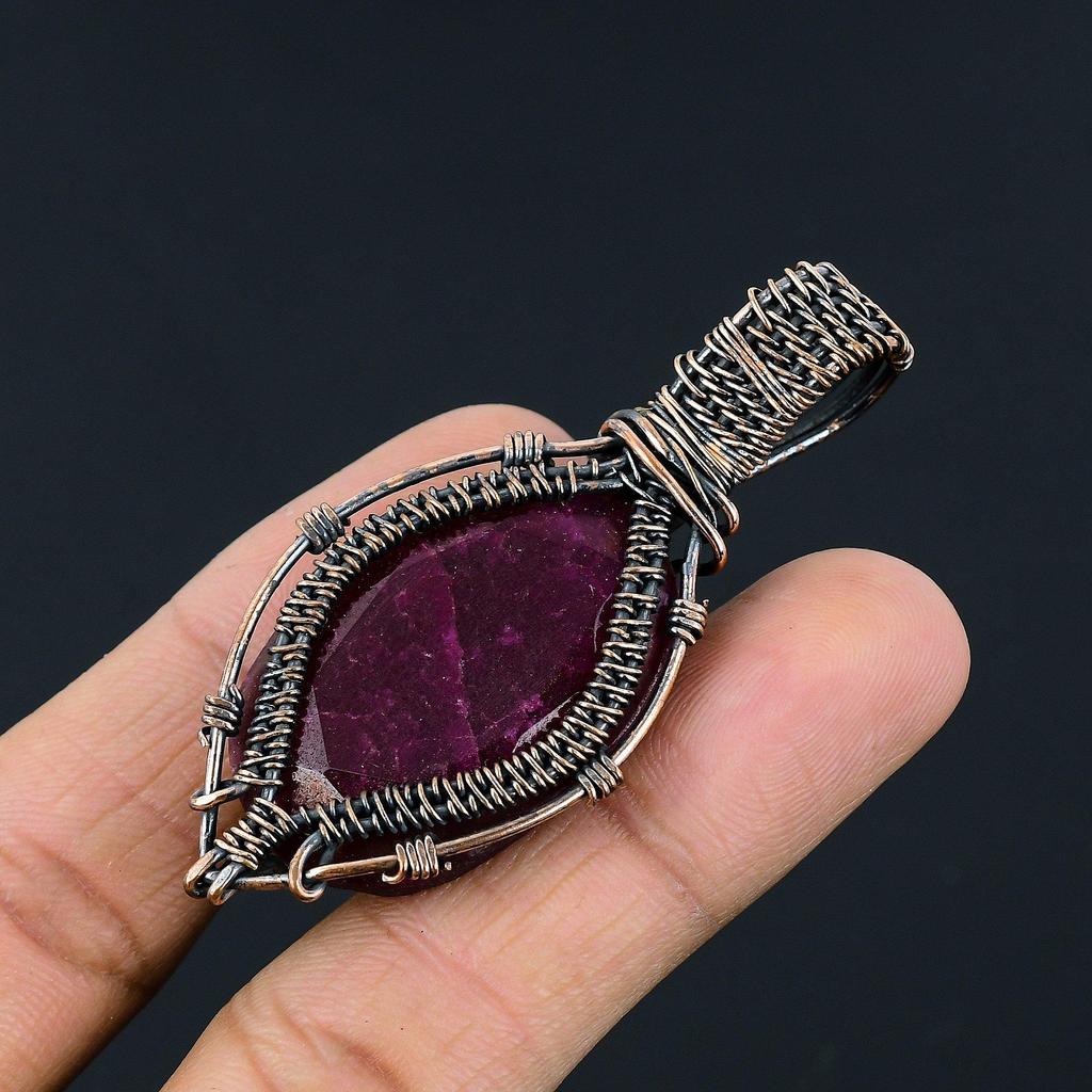 Рубиновый кулон Ювелирные изделия из драгоценных камней, Кулон ручной работы, обернутый медной проволокой 999 пробы, Ювелирные изделия новейшего дизайна