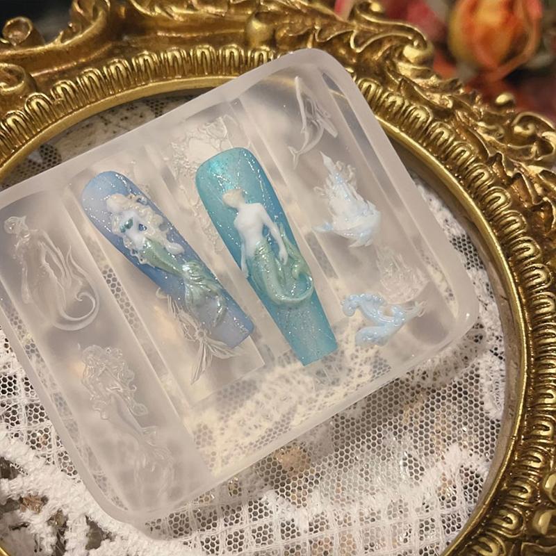 Рельефная русалка силиконовая форма для лепки ногтей, украшения для ногтей, дизайн для ногтей своими руками, стереоскопическая пластина для стемпинга, маникюрные инструменты, аксессуар