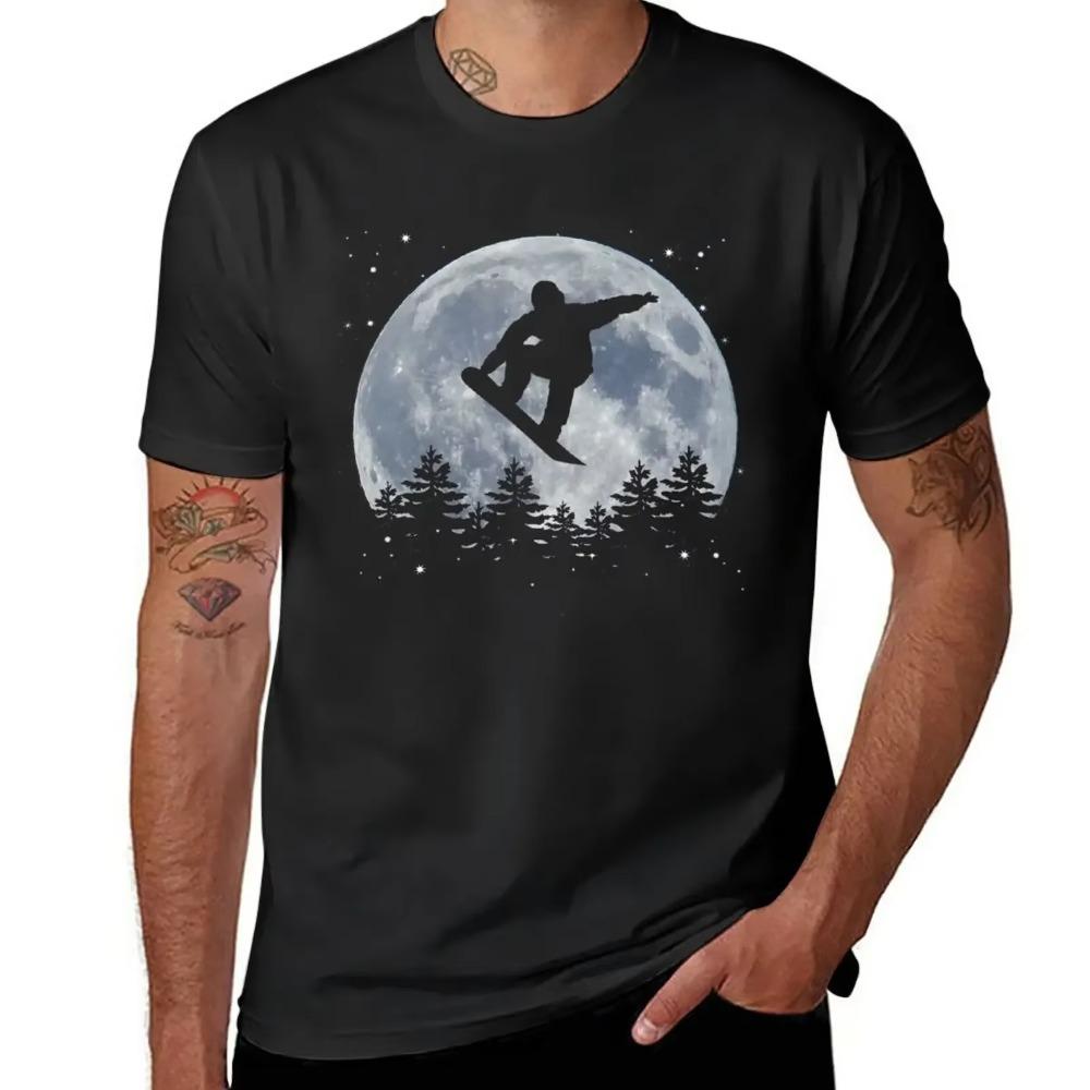 Прыжок на сноуборде на фоне Луны Футболка больших размеров быстросохнущие футболки из плотной ткани для мужчин