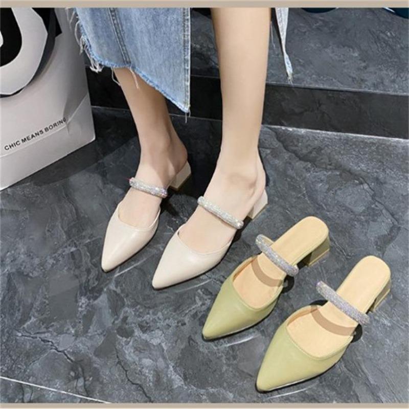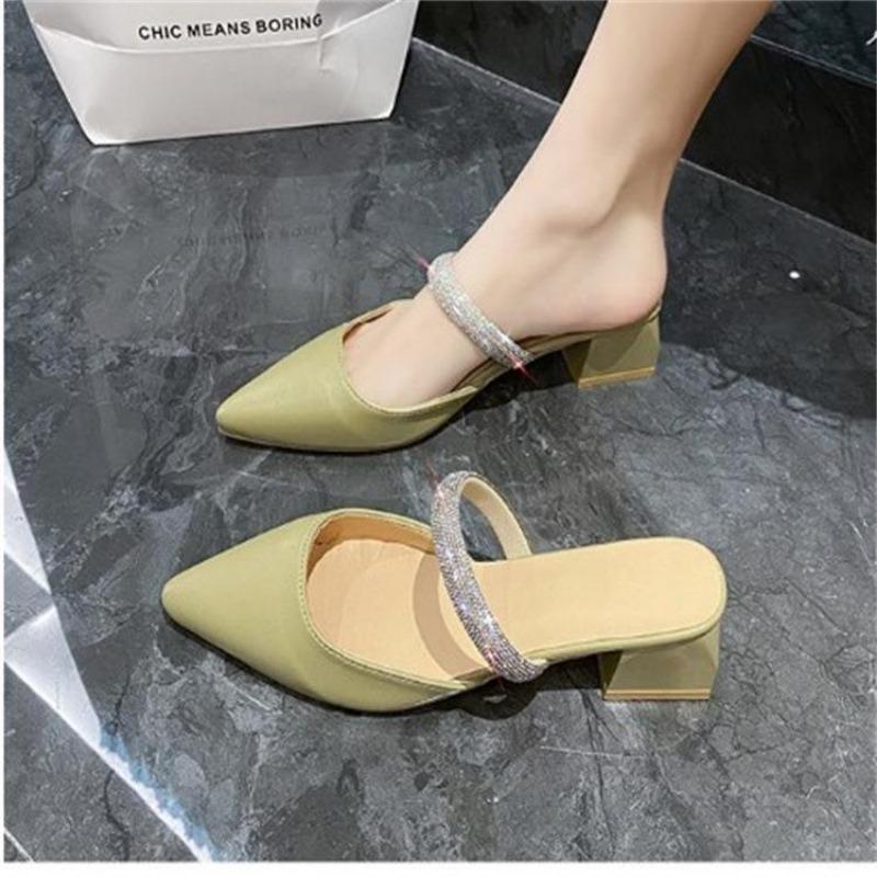 Новая сумка, голова, полушлепанцы женские, летняя обувь, толстый каблук, остроносые туфли, модные, со стразами, фея, босоножки на высоком каблуке