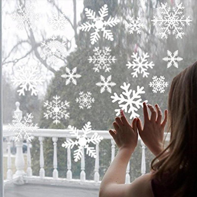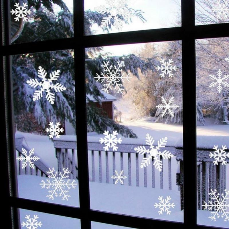 Рождественская наклейка на стену в виде снежинки, набор оконных стеклянных наклеек, украшение для дома