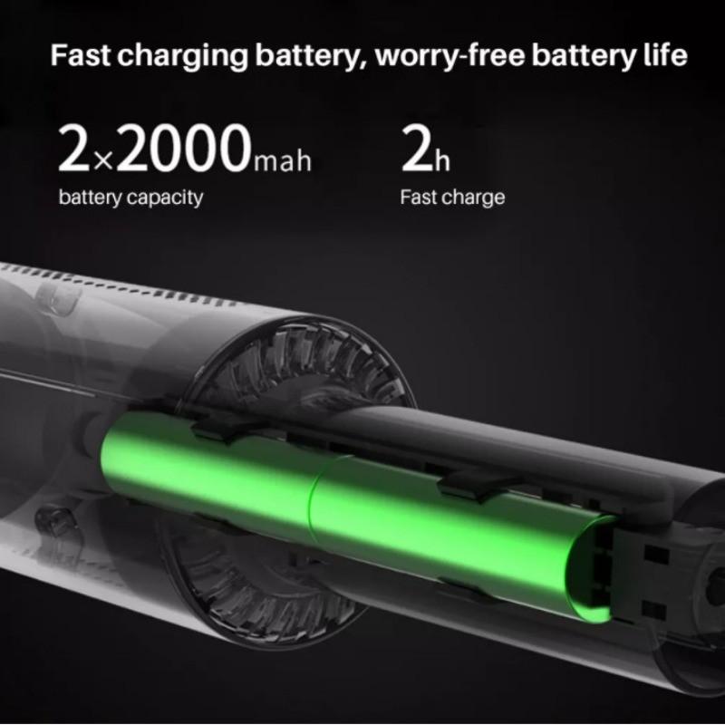 -Аккумулятор большой емкости: Оснащен аккумулятором большой емкости 2000mAh, который имеет сильную всасывающую мощность для более длительного времени автономной работы и легкого пылесоса.
