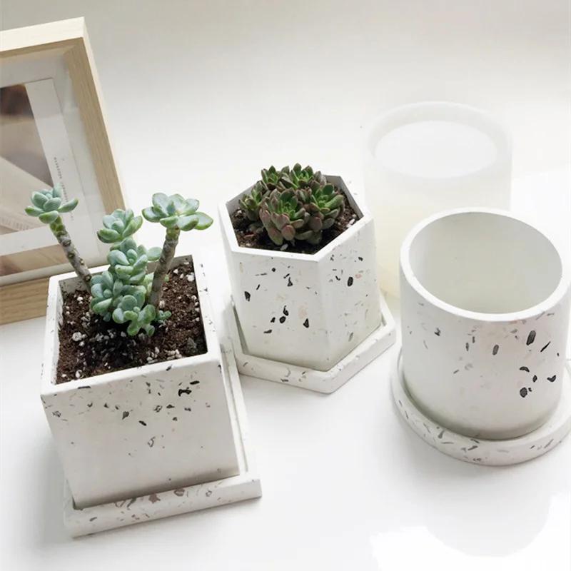 Форма для цветочного горшка из цемента, силиконовая форма для суккулентного горшка, круглая, квадратная, терраццо, форма для цветочного горшка, смола, цемент, художественные принадлежности, глиняные формы