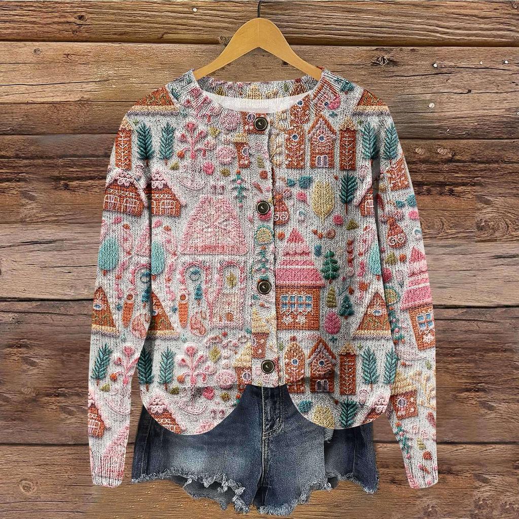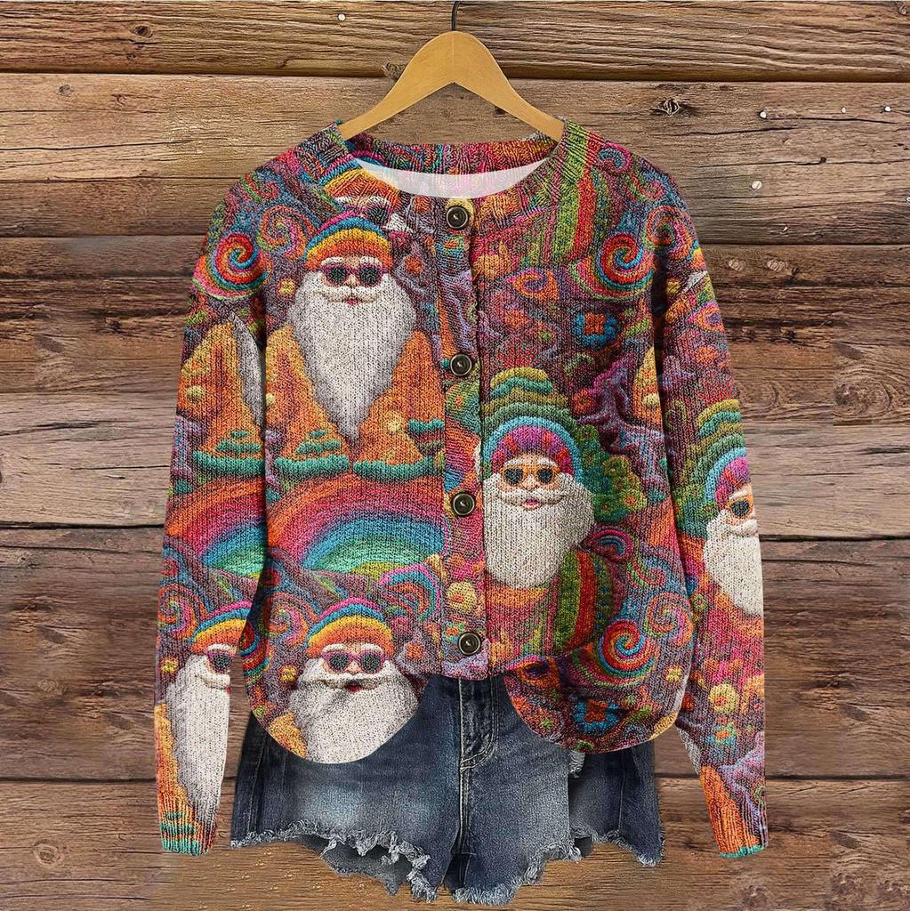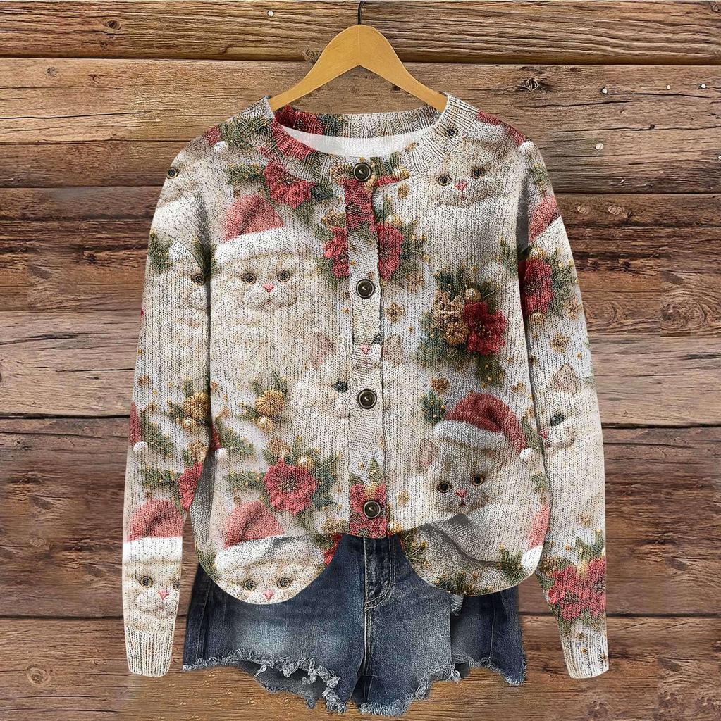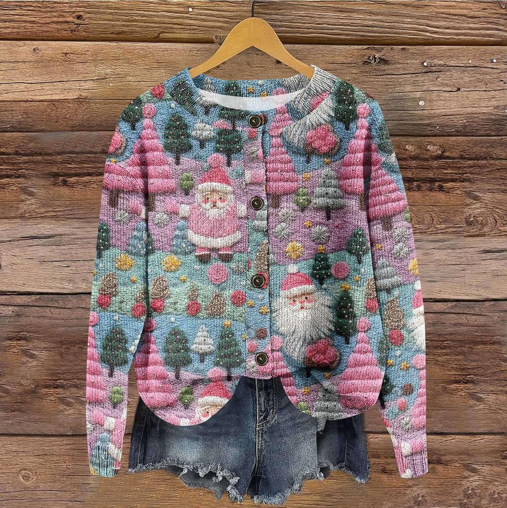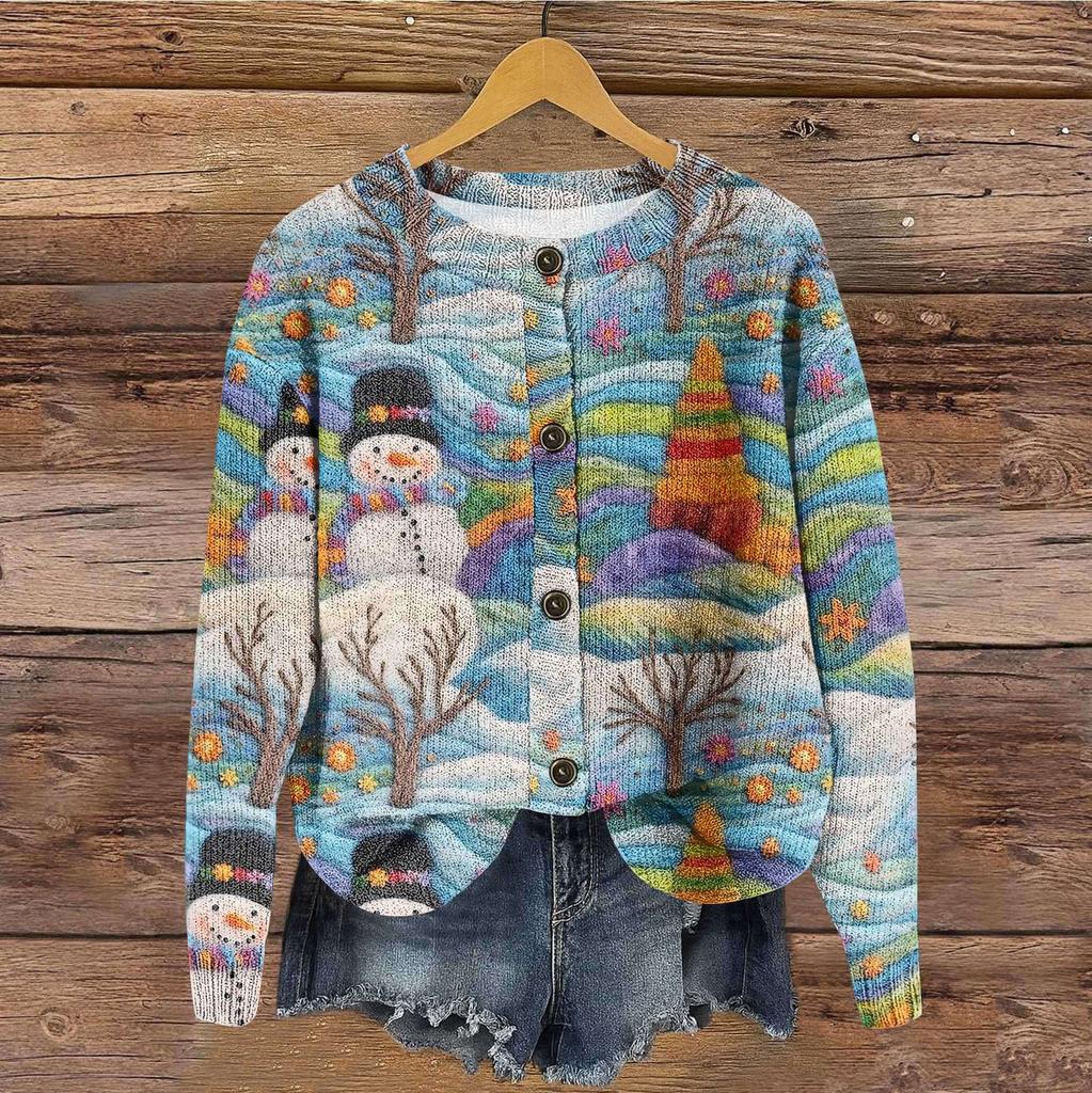 Женский винтажный вязаный кардиган на пуговицах с рождественским принтом
