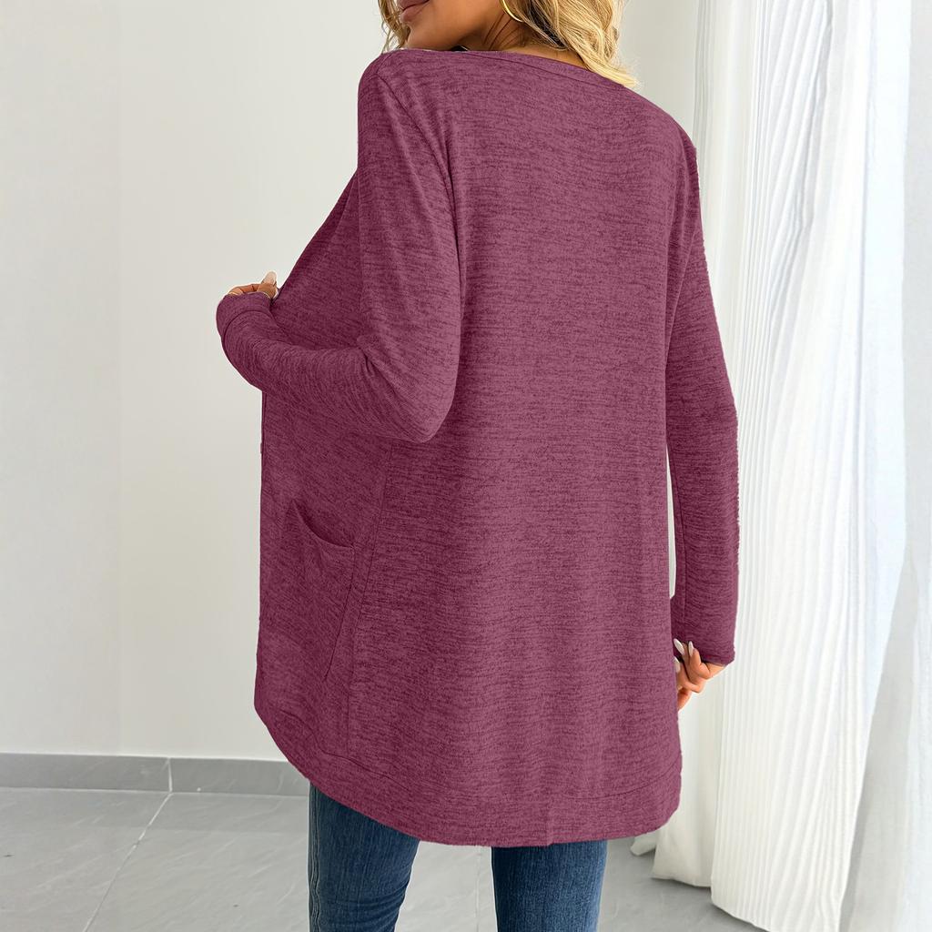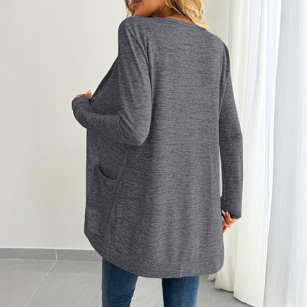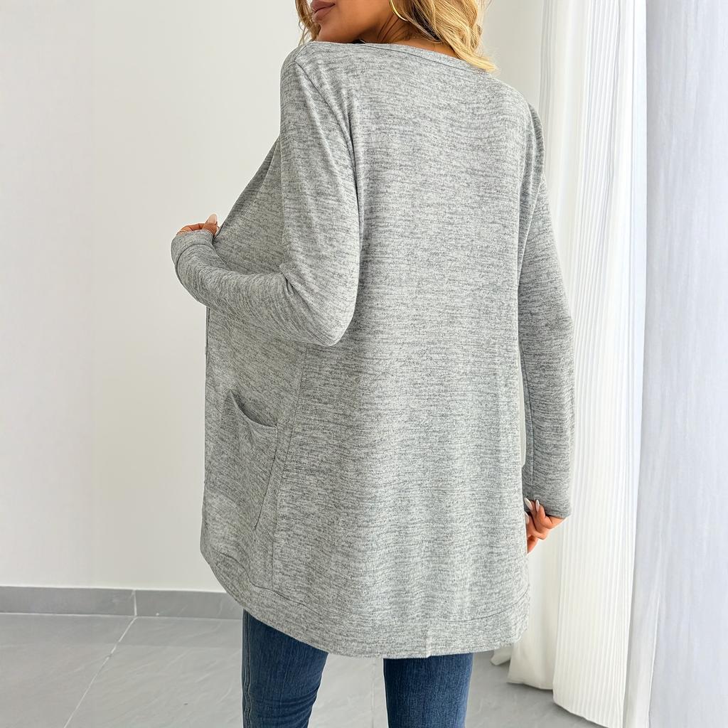 Женский модный однотонный кардиган свободного кроя с длинными рукавами и карманом