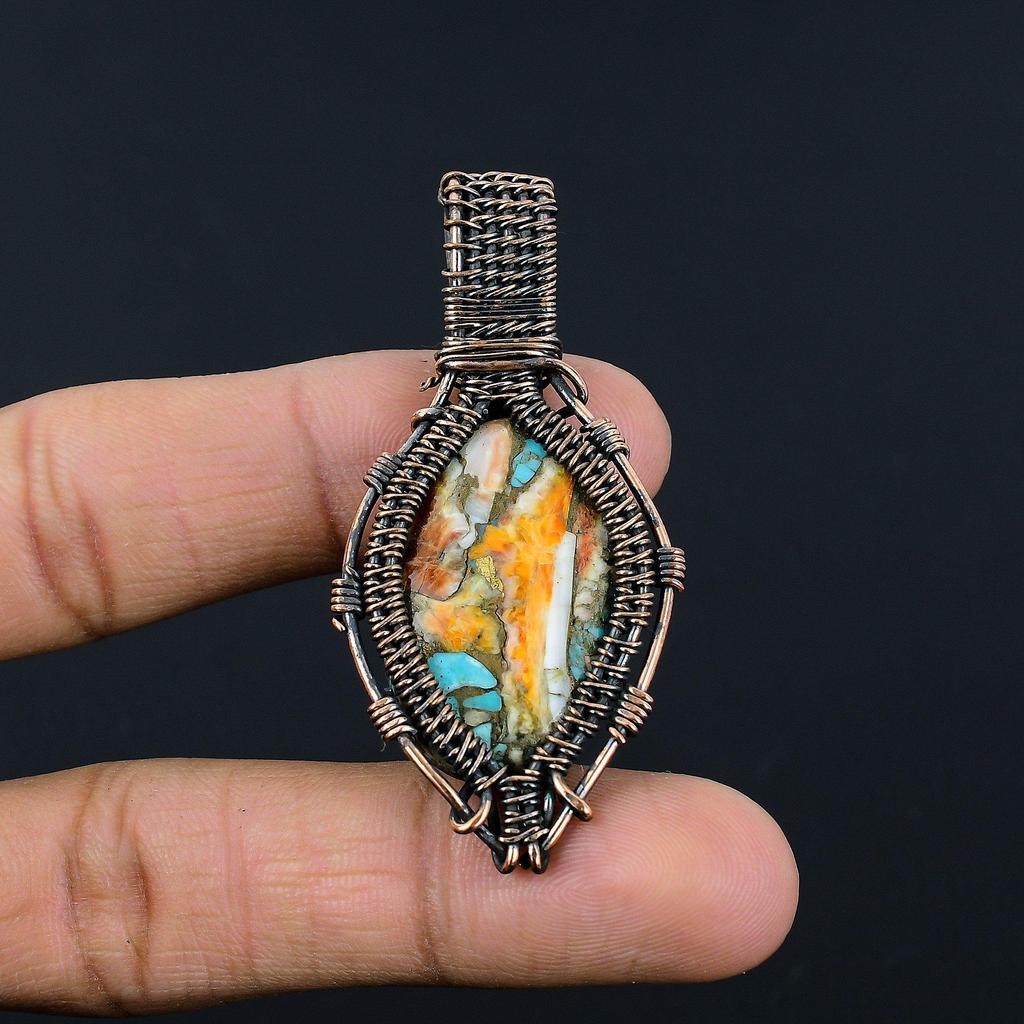 Подвеска из Спини Ойстер, ручная работа, с драгоценным камнем, обмотанная медной проволокой 999 пробы, дизайнерское украшение, для подарка на годовщину