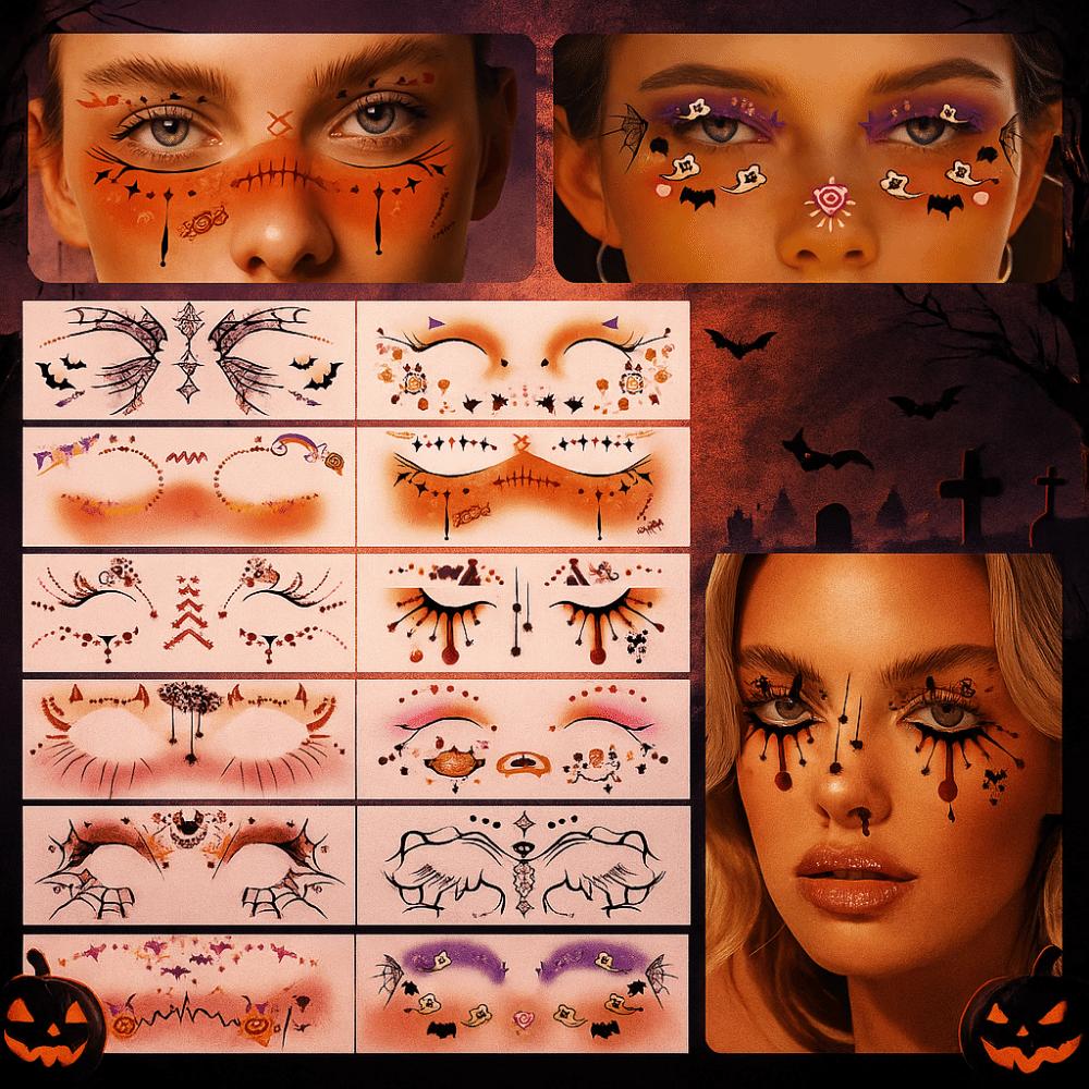 12 шт. Водонепроницаемые татуировки на лицо на Хэллоуин, Портативные наклейки на лицо летучая мышь на Хэллоуин, Усиление атмосферы — купить товар онлайн с бесплатной доставкой по всему миру!