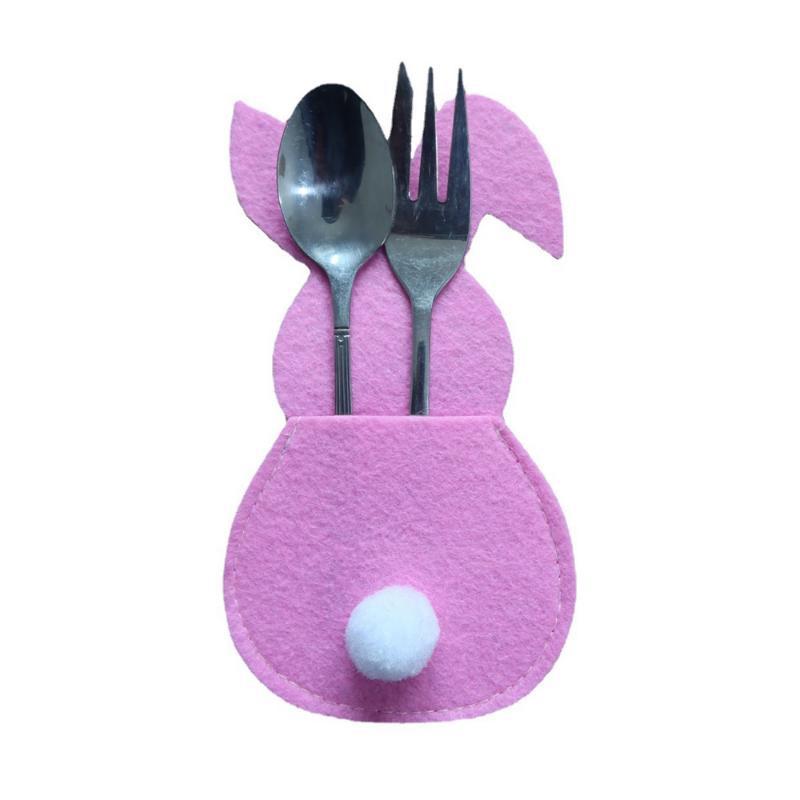 4 шт., фетровый держатель для столовых приборов с пасхальным кроликом, пасхальные украшения для дома, аксессуары для посуды, чехол для столовых приборов с кроликом, сумка для стола