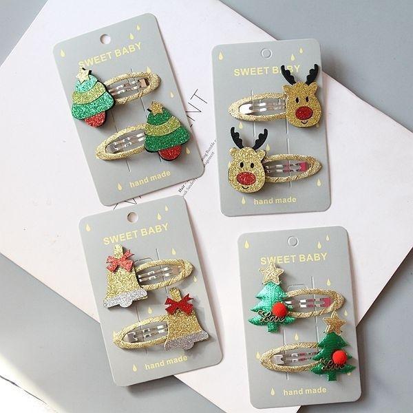 2 шт., милые рождественские заколки для девочек, заколки для волос, головные уборы с героями мультфильмов, детские заколки, подарочные аксессуары для волос