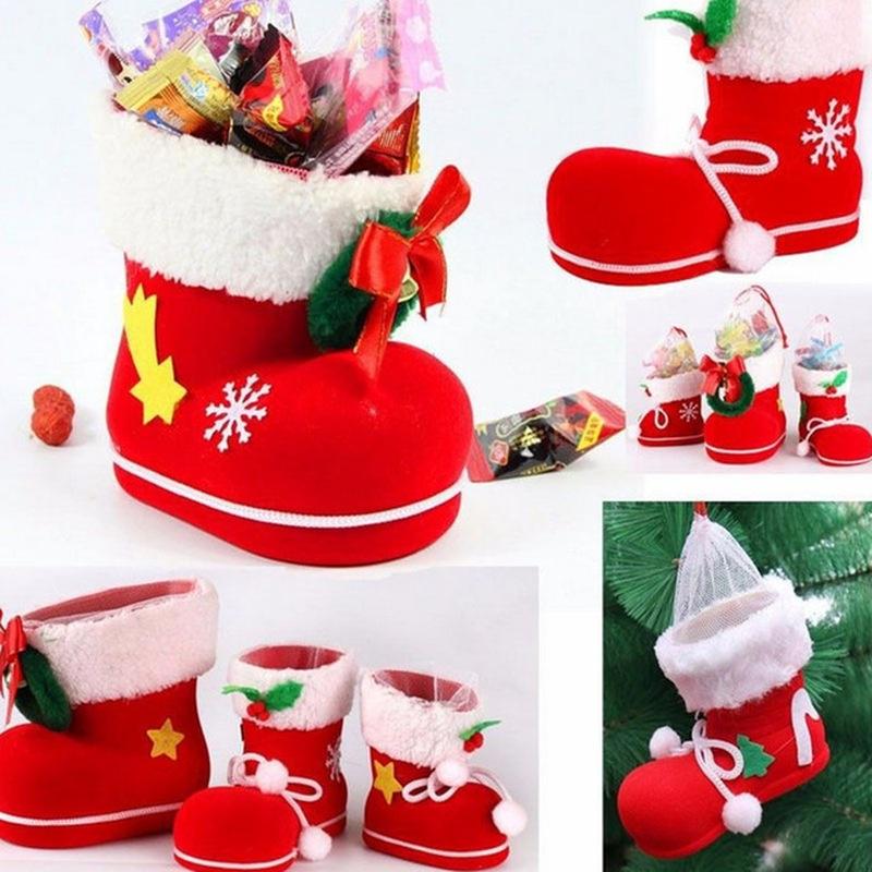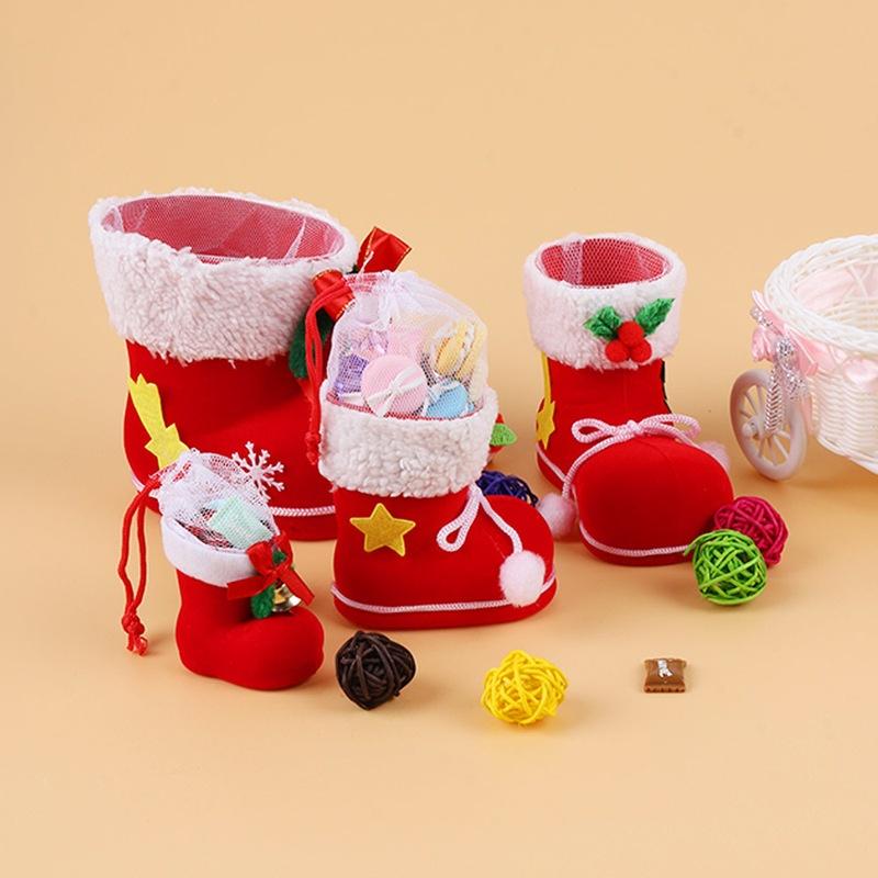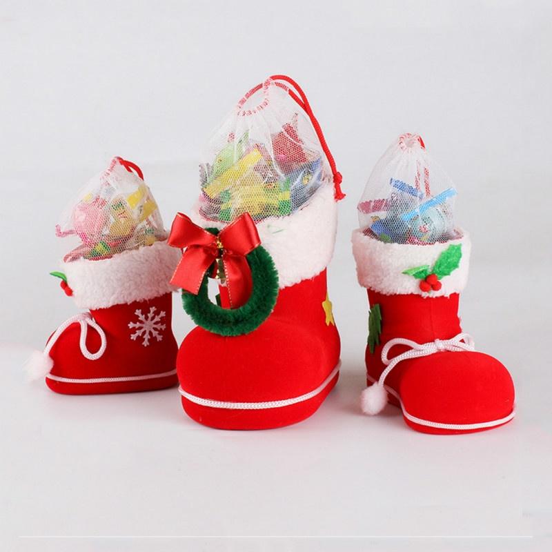 4 размера, рождественские конфетные сапоги, флокированные сапоги Санта-Клауса, чулки, декоративная подарочная коробка для конфет
