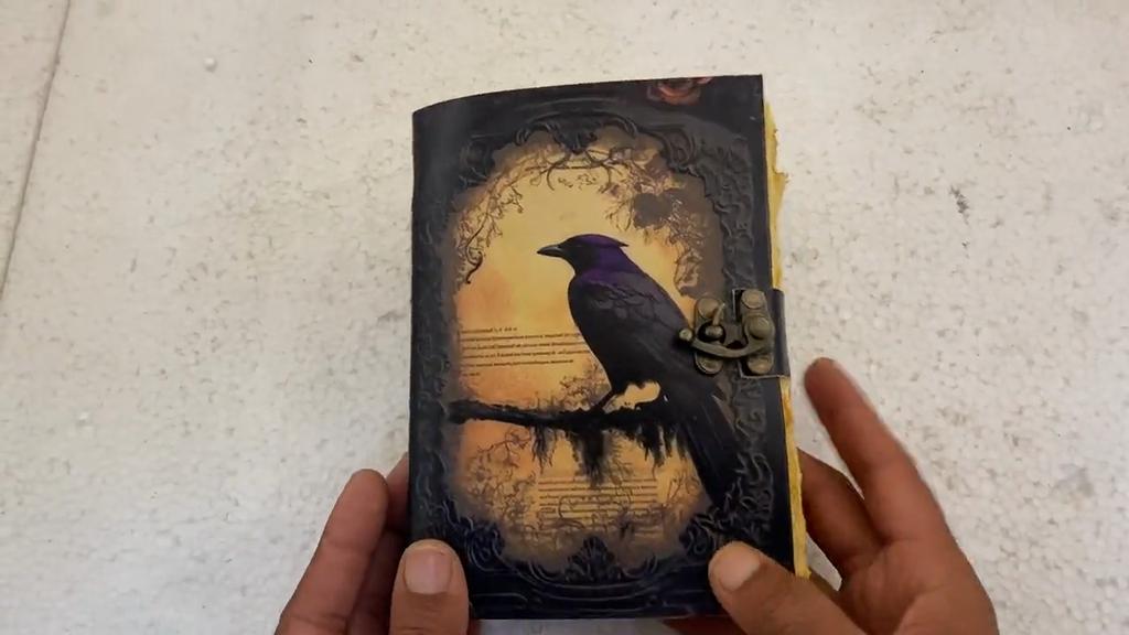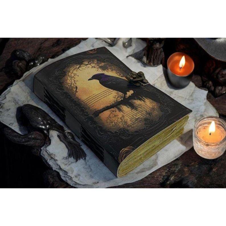 Leather Journal Gothic Notebook The Raven Grimoire Print - Vintage Handamde Journal Book of Shadows Witchcrafts Journal Gifts for Men