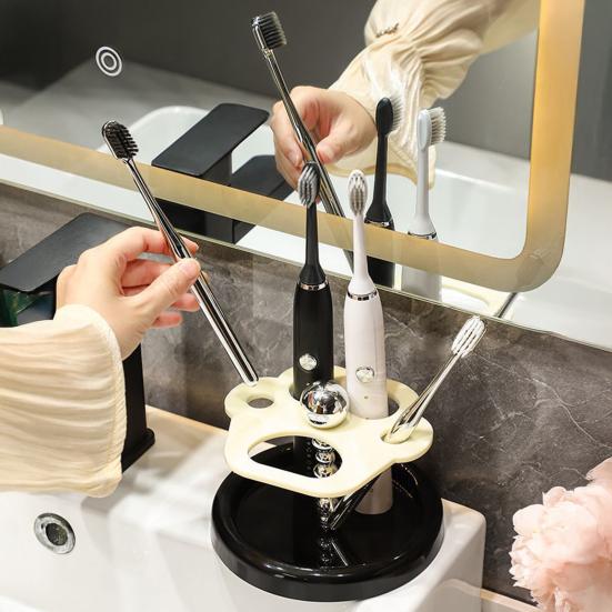 Компактное решение: Его компактный размер эффективно организует туалетные принадлежности, не занимая много места.. Поддерживайте порядок и чистоту в ванной комнате или туалете с помощью этого функционального, но стильного держателя для зубных щеток.