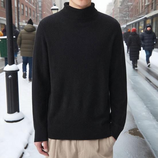 Простой стиль: Оцените простоту однотонного дизайна этого мужского свитера, с классическим высоким воротником, который добавляет нотку изысканности.. Приталенный крой и удобная ткань делают его универсальным выбором для различных случаев.