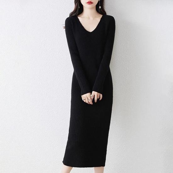 Лестный облегающий дизайн: Окунитесь в элегантность с облегающим вязаным платьем, которое красиво подчеркивает вашу фигуру.. Высокая эластичность платья обеспечивает облегающий силуэт, что делает его универсальным и стильным предметом гардероба для различных случаев.