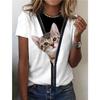 Летний женский топ с милым 3D-принтом кота, женская модная футболка с круглым вырезом и коротким рукавом, топы с изображением животных, футболки, одежда Y2k