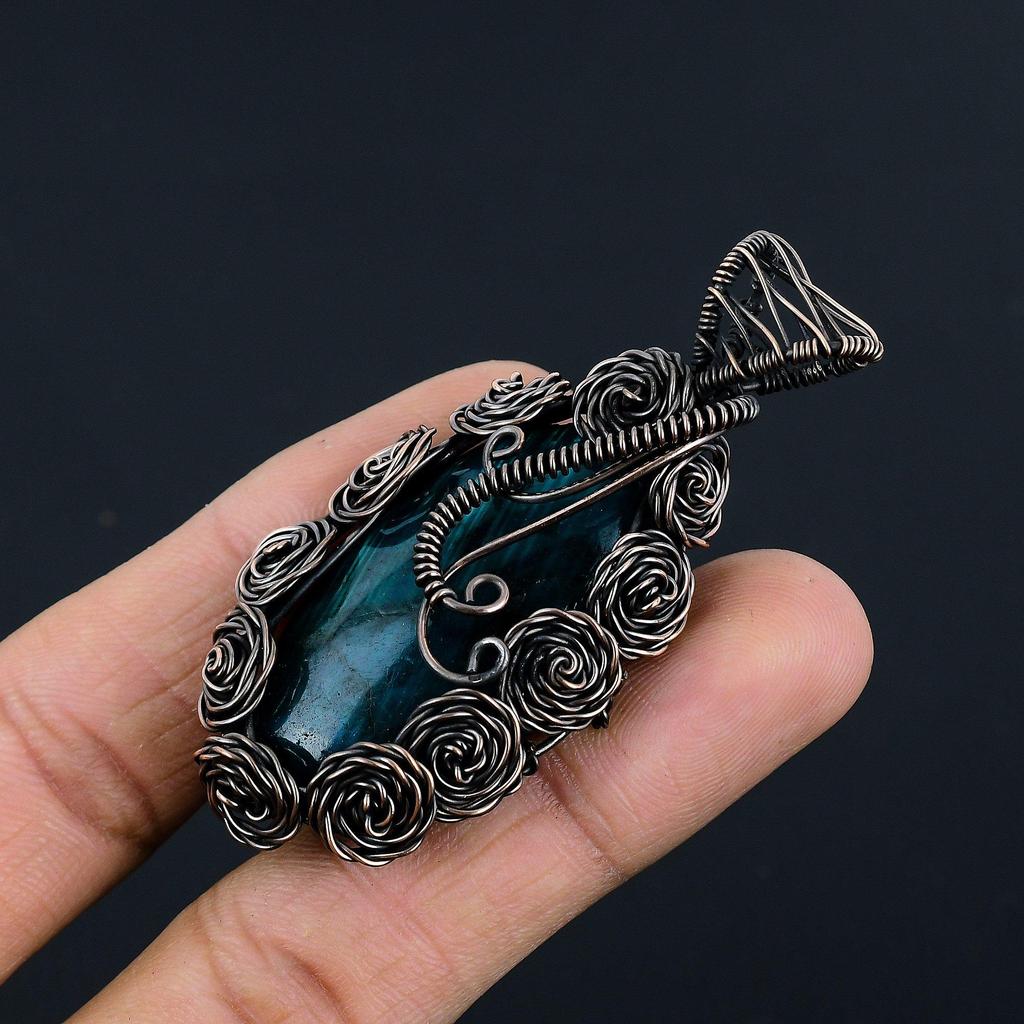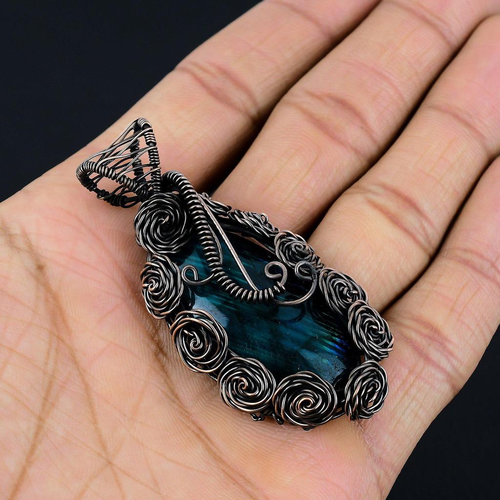 Украшения из лабрадорита с синим отблеском, кулон, обернутый медной проволокой 999 пробы, украшения из драгоценных камней ручной работы, подарки для жены, совершенно новый кулон