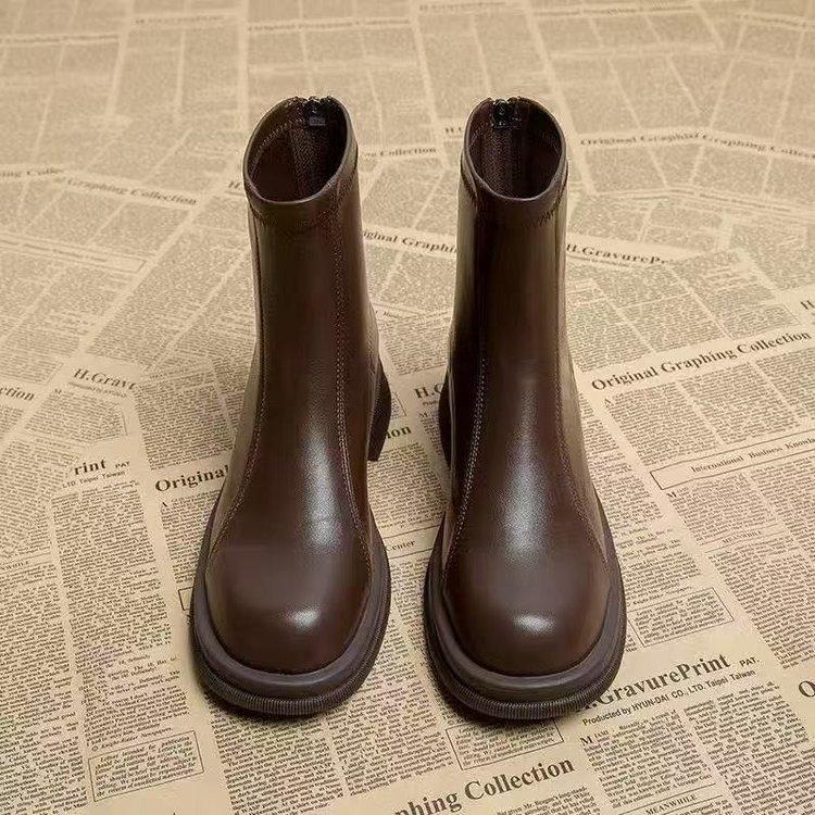 Ретро стиль короткие ботинки женские осенне-зимние тонкие маленькие ботильоны на толстой подошве жареные уличные ботинки Мартина