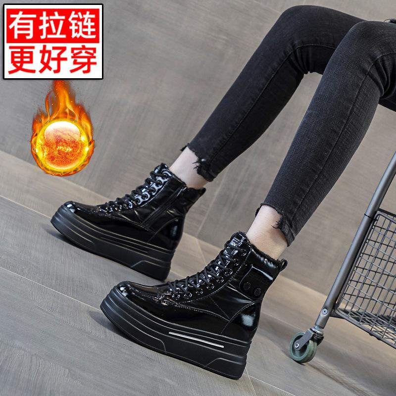 Новая женская обувь на толстой подошве и теплые короткие ботинки на зиму, кожаные повседневные маффины на подошве и зимние ботинки с хлопком.