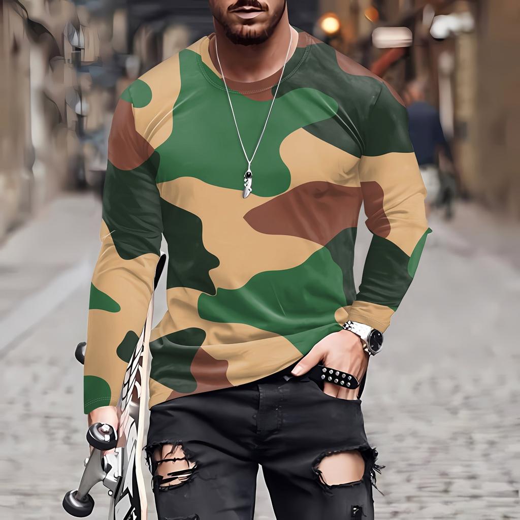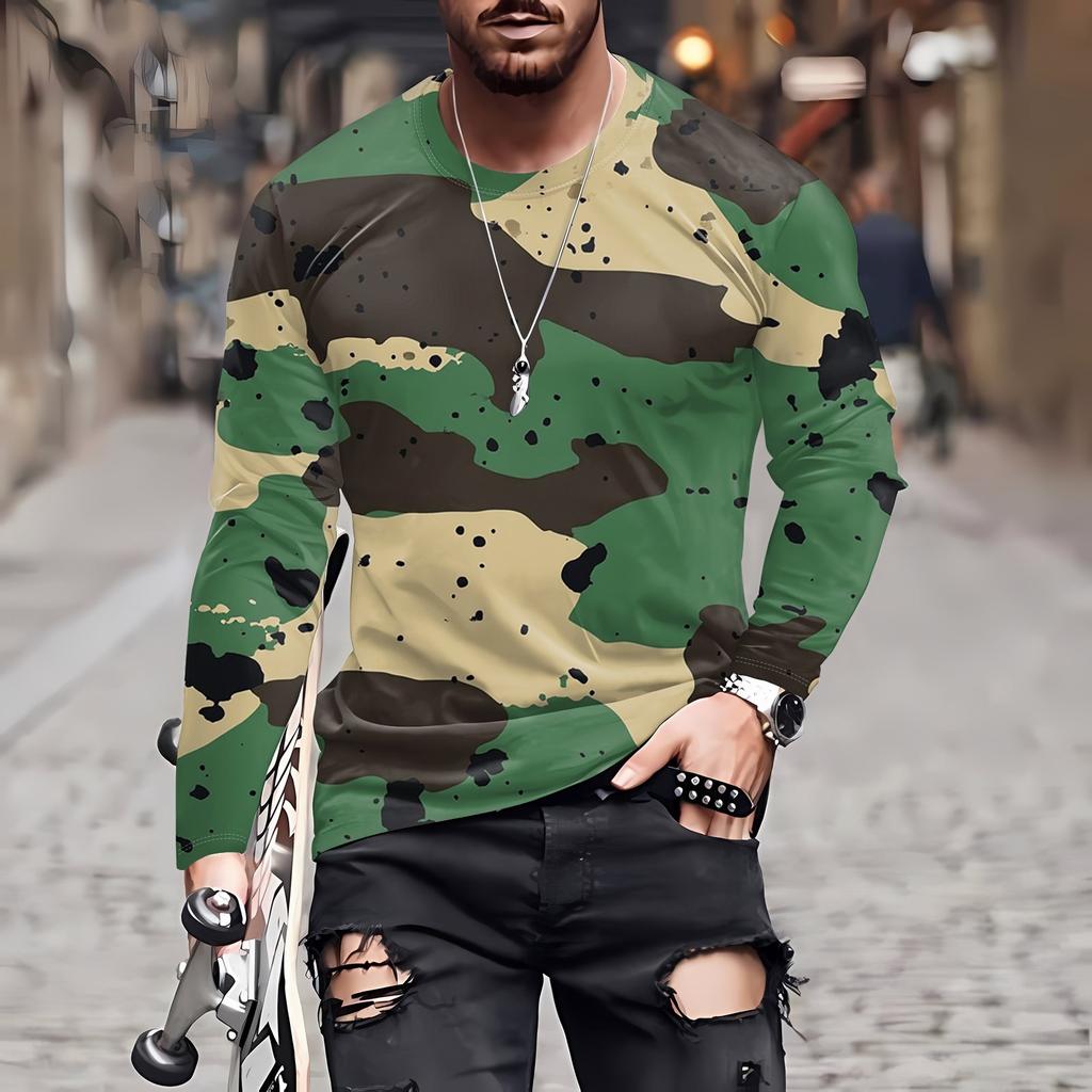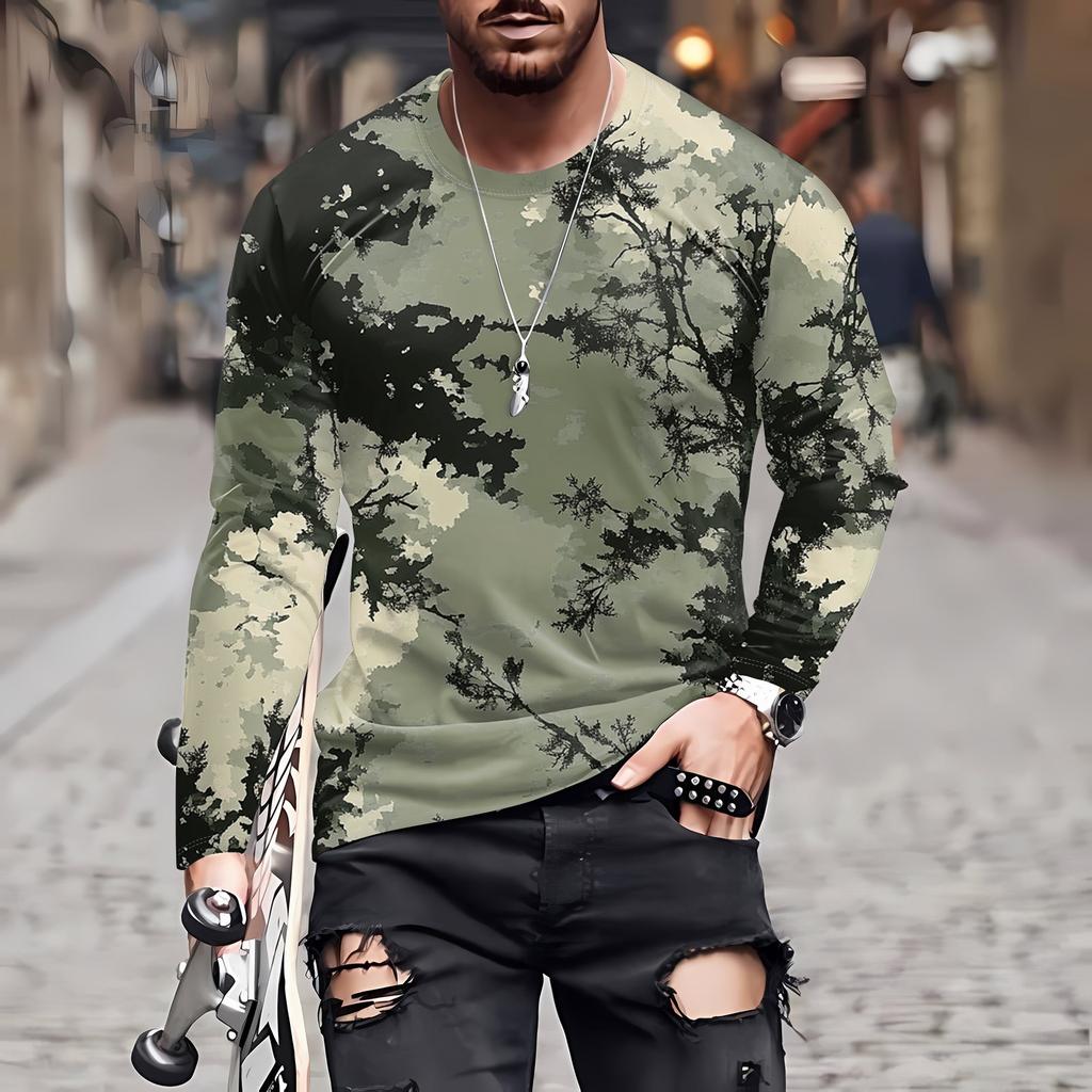 Муж. Футболка Круглый вырез Одежда Одежда На открытом воздухе Длинный рукав С принтом Модельер Винтаж