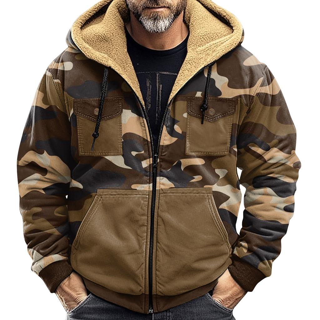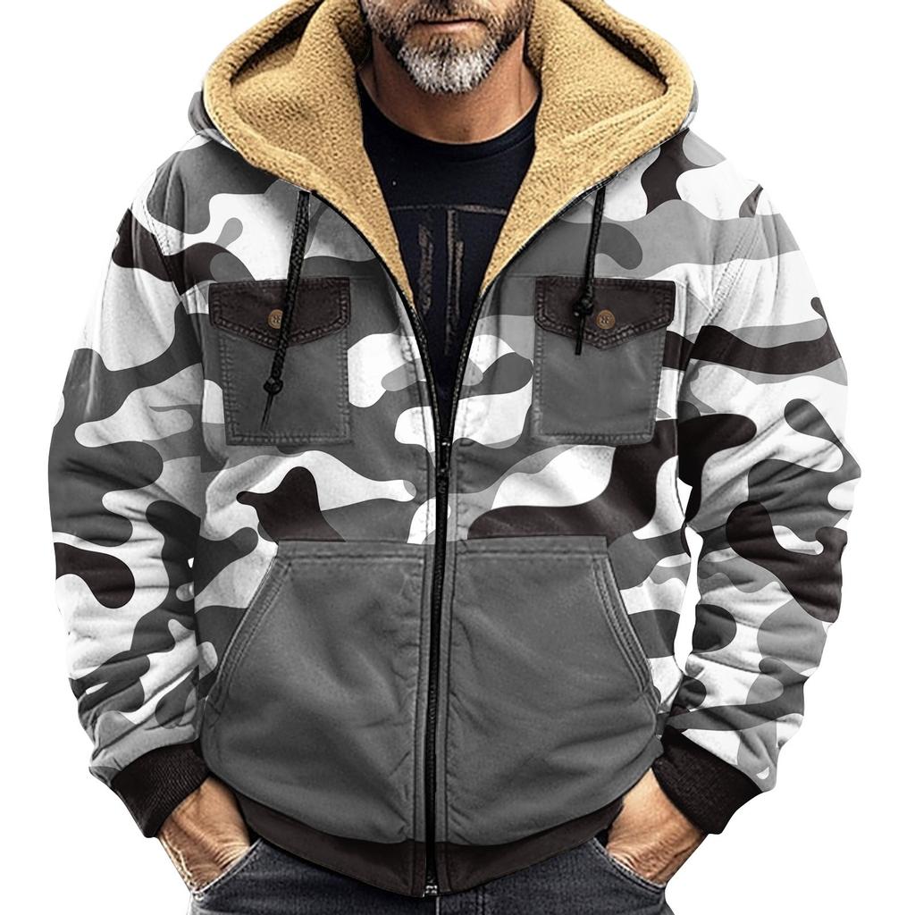 Мужская зимняя куртка с камуфляжным принтом, мужская повседневная куртка с капюшоном на молнии