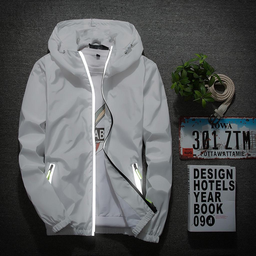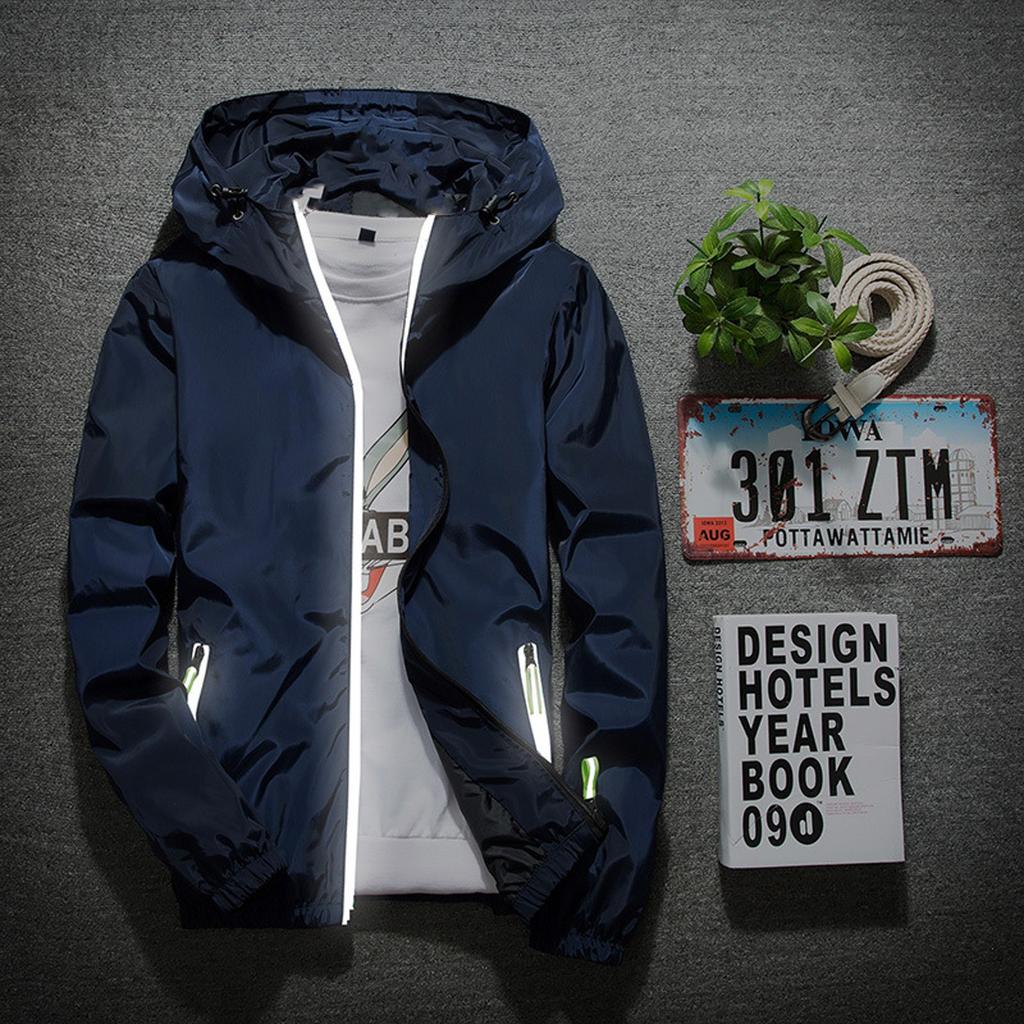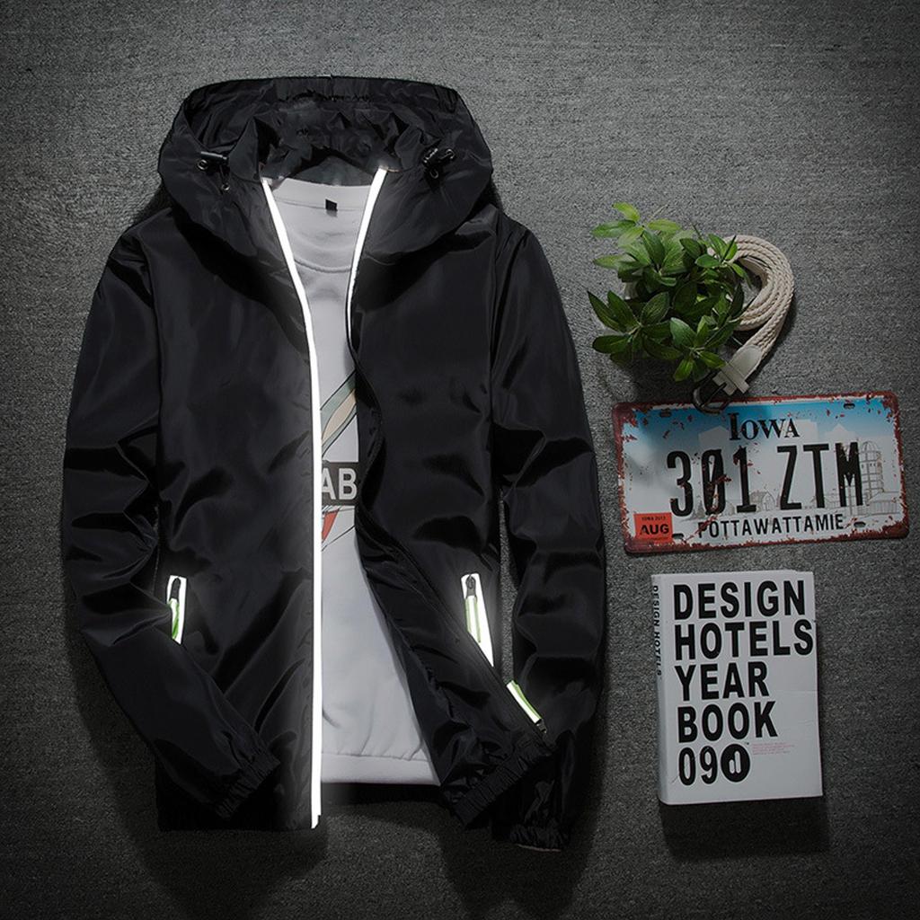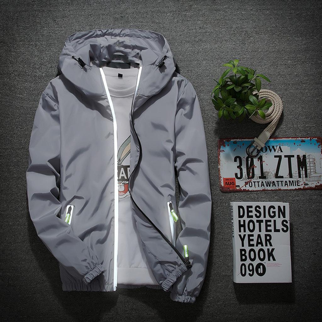 Мужская однотонная повседневная куртка больших размеров со светоотражающей молнией для активного отдыха