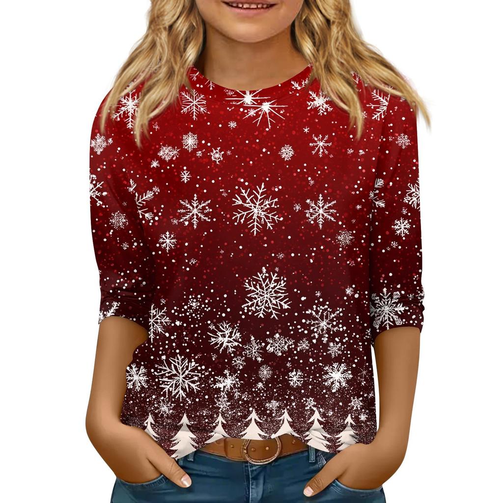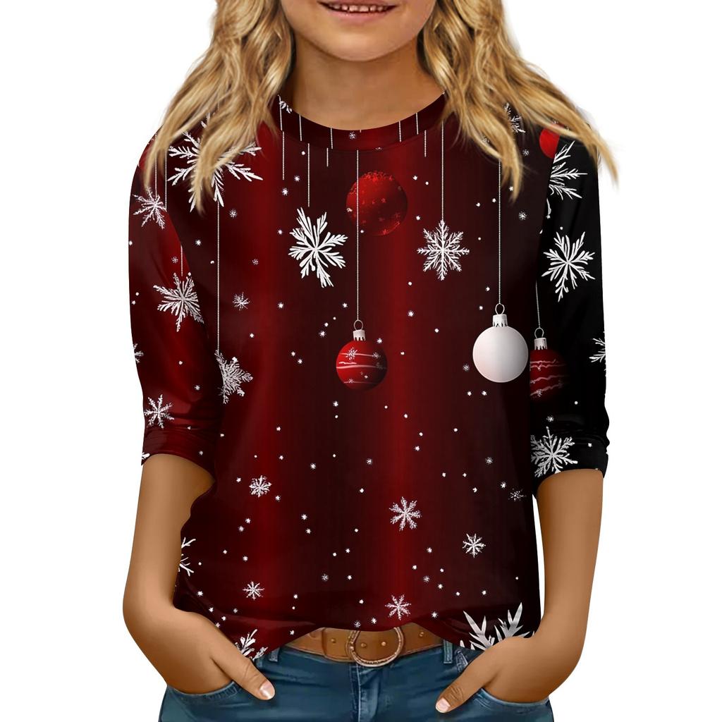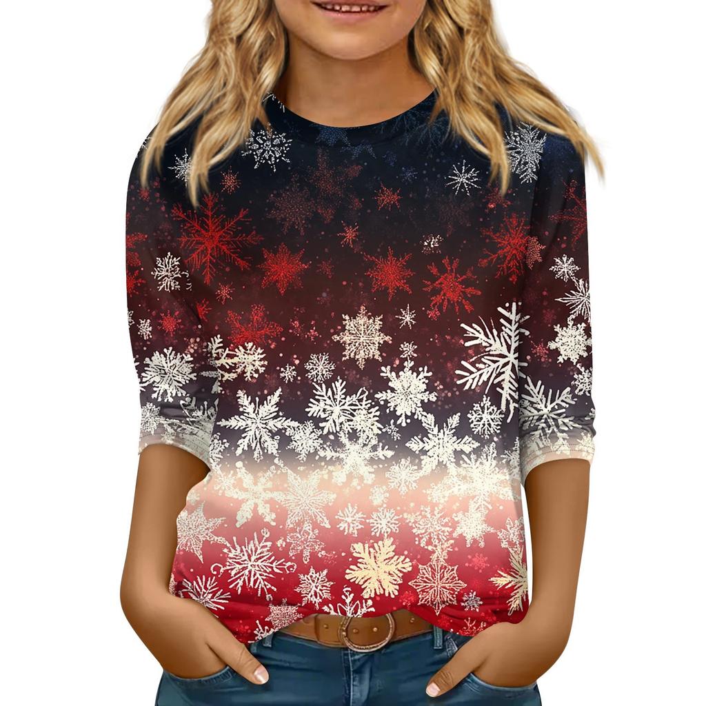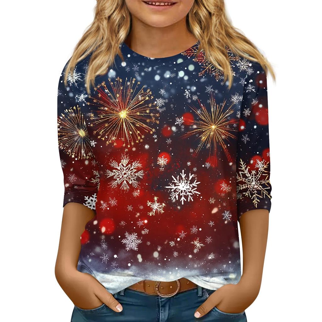 Детская футболка с рукавом 3/4, повседневная футболка с принтом, круглый вырез, блузка-пуловер