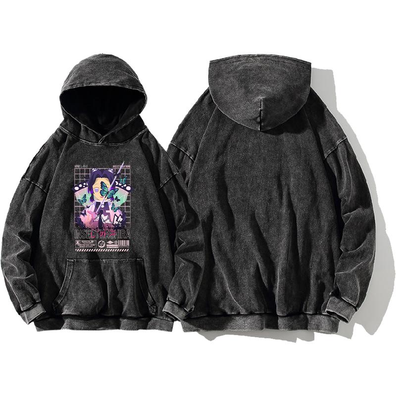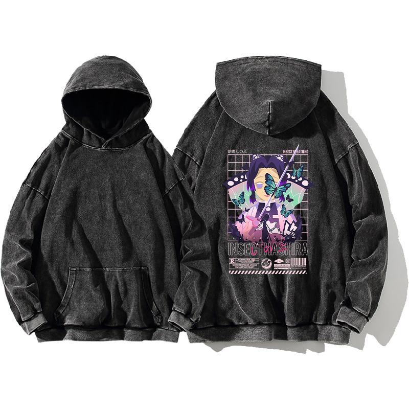 Аниме Клинок, рассекающий демонов Кочо Шинобу Милый принт Толстовки с капюшоном для мужчин и женщин из стираного хлопка больших размеров Толстовка Уличная одежда Харадзюку