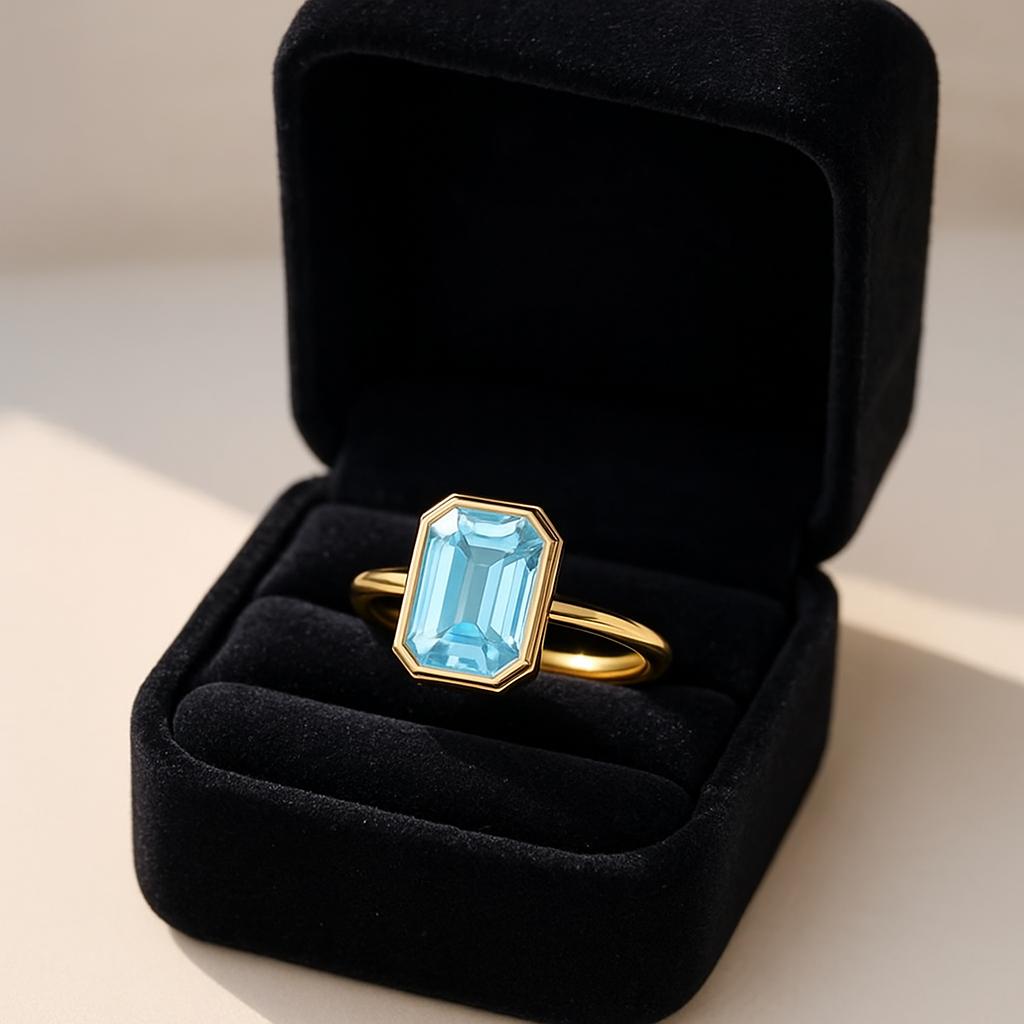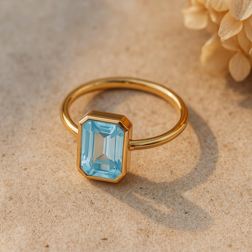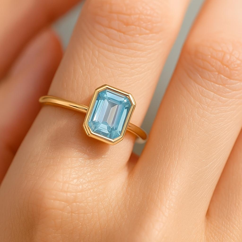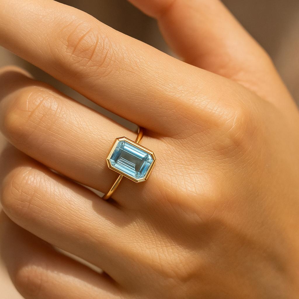 Винтажное помолвочное кольцо с аквамарином огранки «Изумруд» Кольцо обещания для нее Юбилейный подарок для жены Рождественский подарок