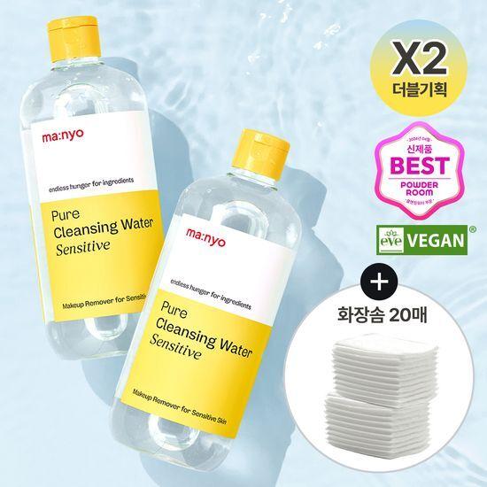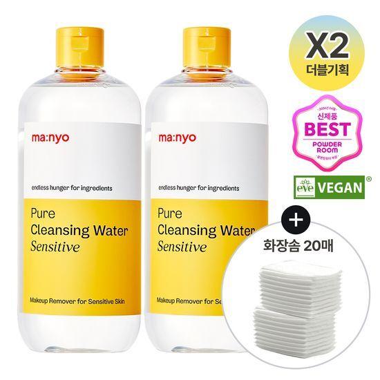 ma:nyo Чистая очищающая вода для чувствительной кожи 500 млx2 (+20 ватных дисков в комплекте)