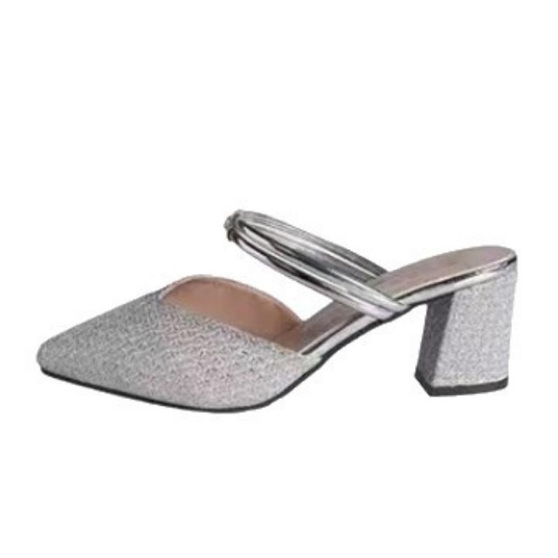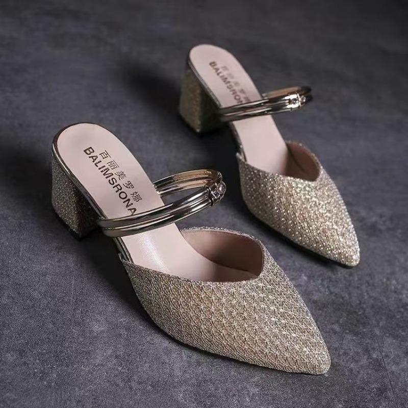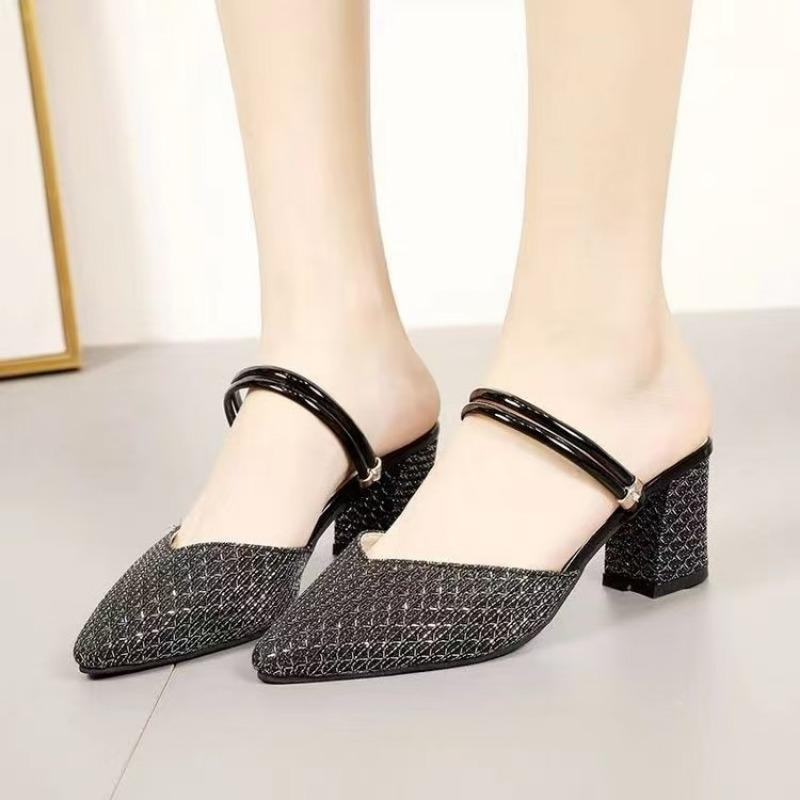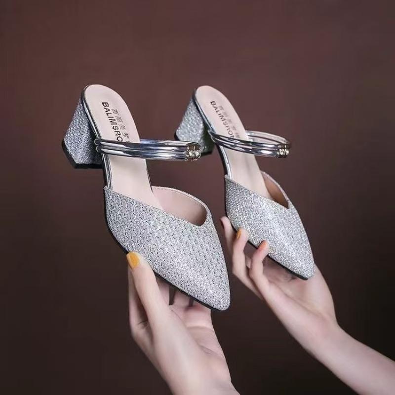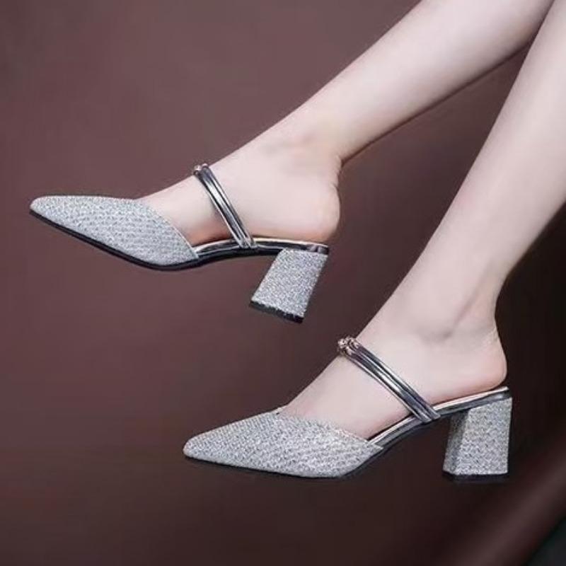 Ношение полушлепок с острым носком, универсальная женская обувь, модные, два способа ношения, женские летние новинки, с закрытым носком, на толстом каблуке, крутые шлепки