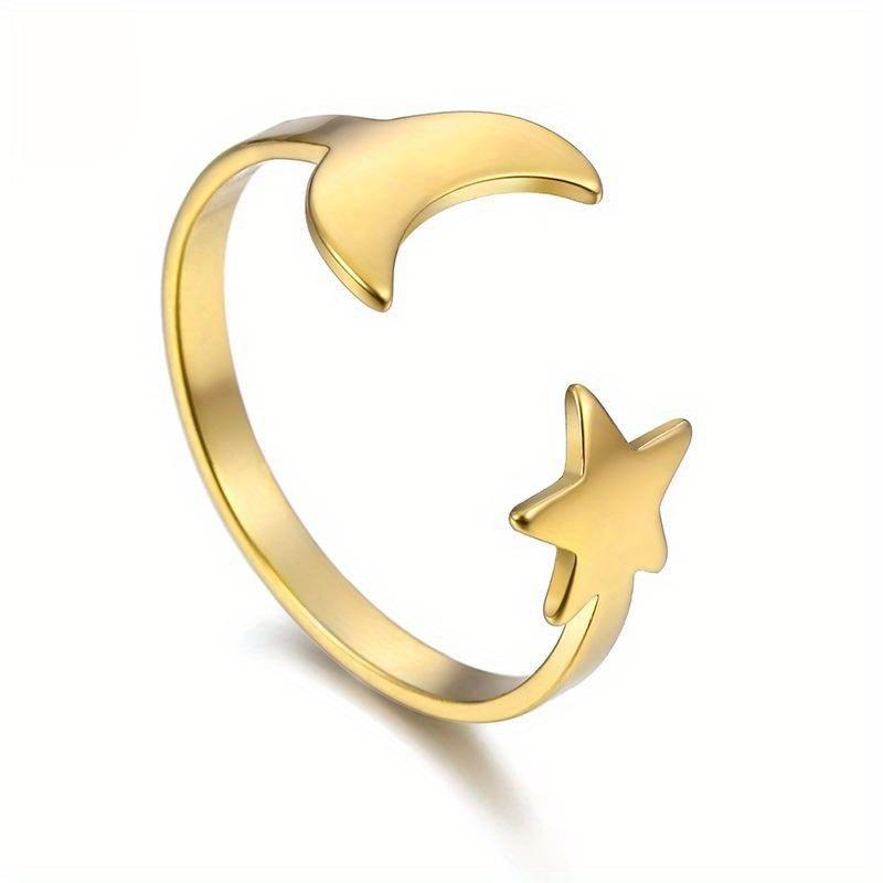 Креативное и Минималистичное Кольцо с Открытием в Виде Звезды и Луны, Модный Полый Дизайн, Аксессуар Ручной Работы, Универсальное и Персонализированное Кольцо-Украшение.