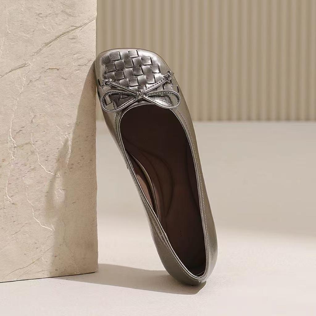 Тканые туфли Doudou на низком каблуке, на мягкой подошве, одинарные туфли с бантом, женские, новинка ранней весны, туфли-балетки с мелким вырезом на плоской подошве