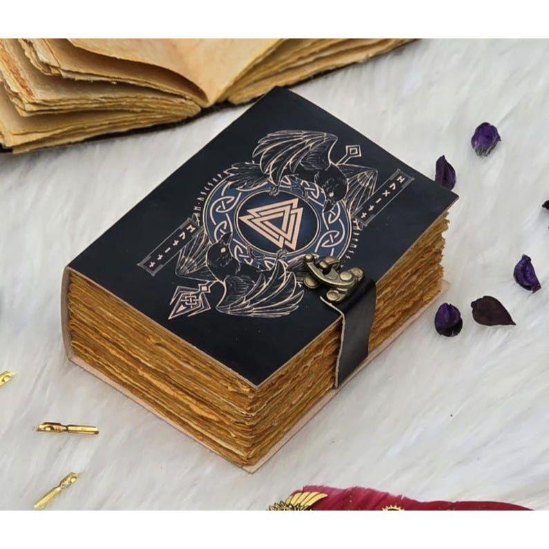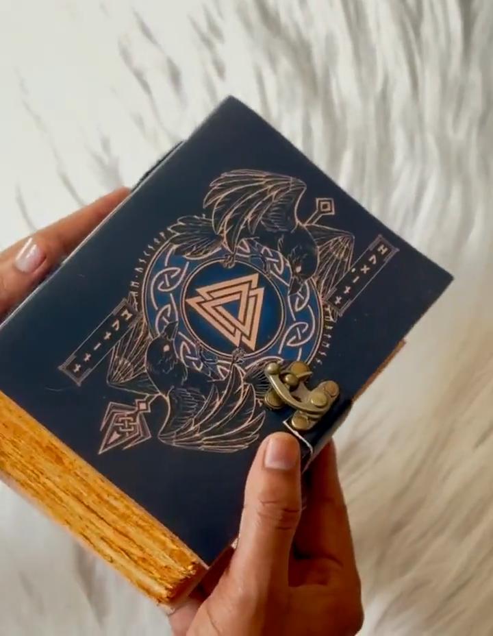 Кожаный журнал с замком «Скандинавская мифология» | Тетрадь с рунами викингов | Скандинавский гримуар ручной работы