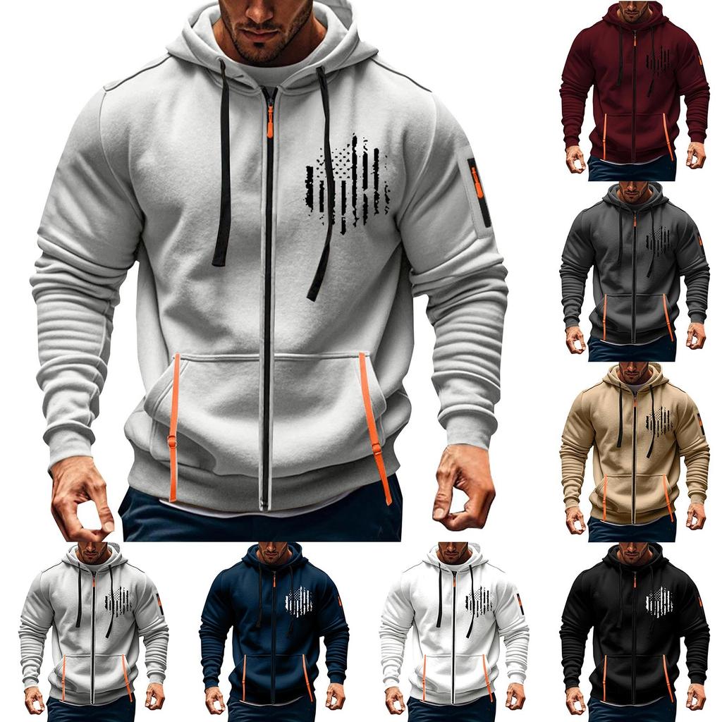 Мужская спортивная повседневная толстовка с капюшоном, кардиган с капюшоном на молнии, многокарманное пальто с капюшоном