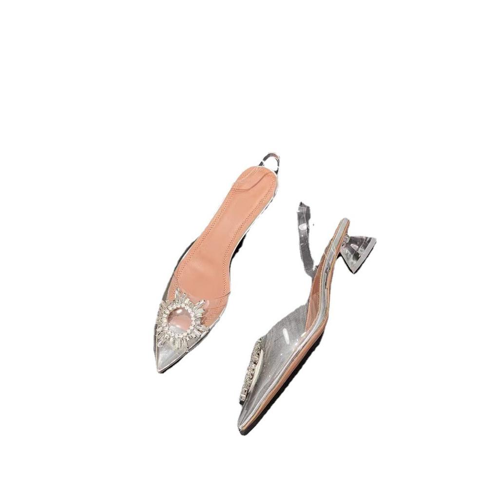 Стразовые сандалии лето новые остроносые тонкий каблук прозрачные пустые высокие каблуки