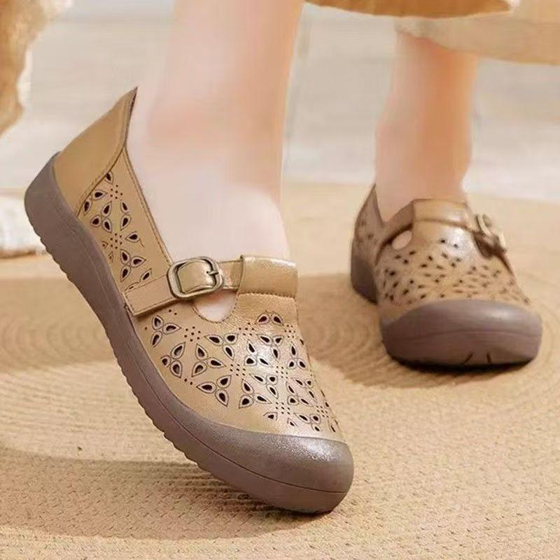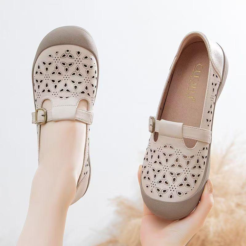 Летние новые туфли с круглым носком, полые, дышащие, с отверстиями, из мягкой кожи, на маффиновой подошве, удобные туфли, сандалии женские
