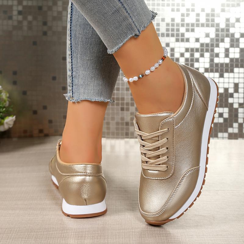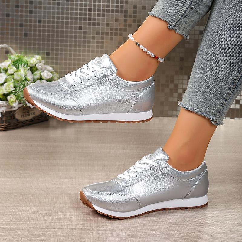 Мода Мода Золото Серебро Кроссовки на платформе Женские Весна Осень На шнуровке Большой размер Повседневные кроссовки Женские Комфортные Нескользящие Спортивная обувь