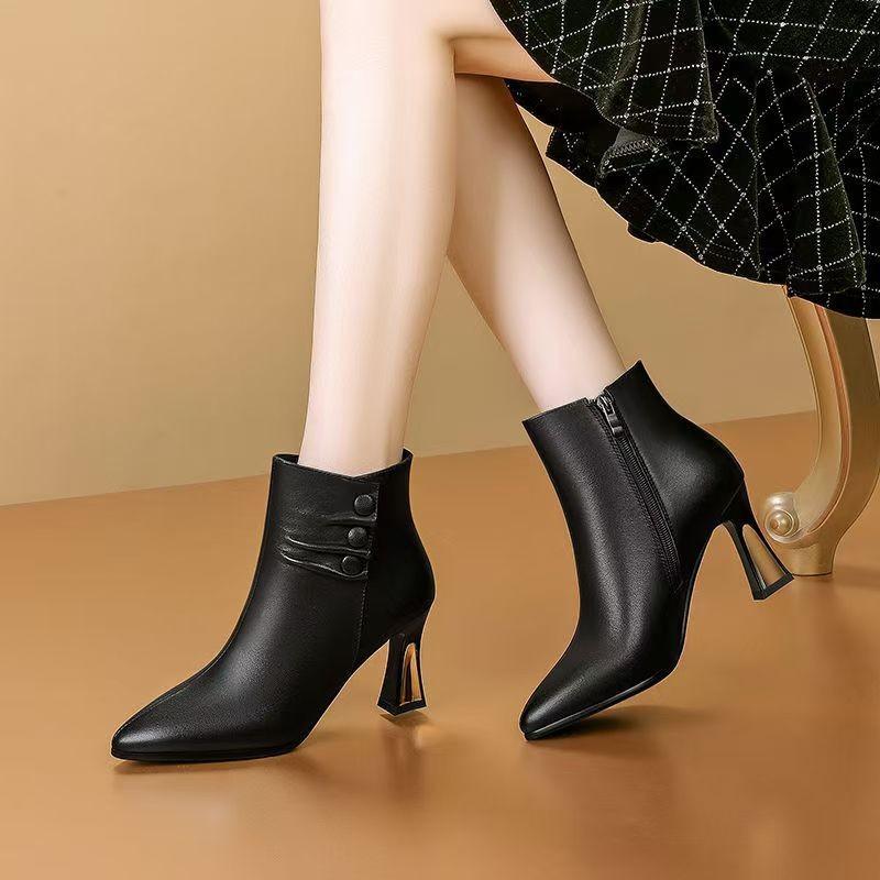 Модные осенне-зимние женские модные ботинки Новые ботильоны 2025 Женские ботинки на толстом каблуке с боковой молнией Женские удобные туфли на высоком каблуке