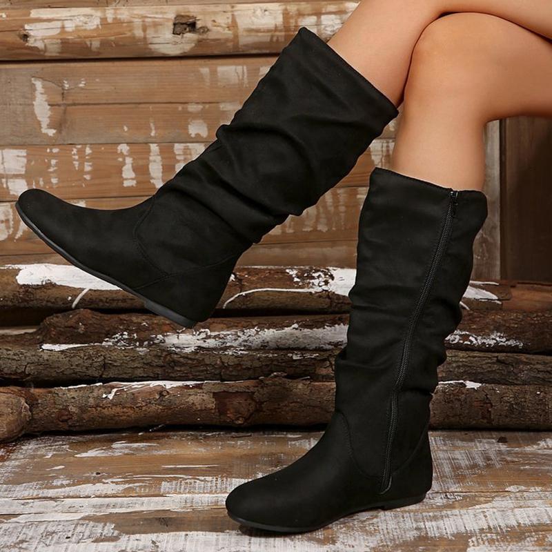 Модные осенне-зимние розовые полусапоги для женщин 2025 Модные плиссированные сапоги из искусственной замши Женские больших размеров 36-42 Плоский каблук Длинные боты Mujer