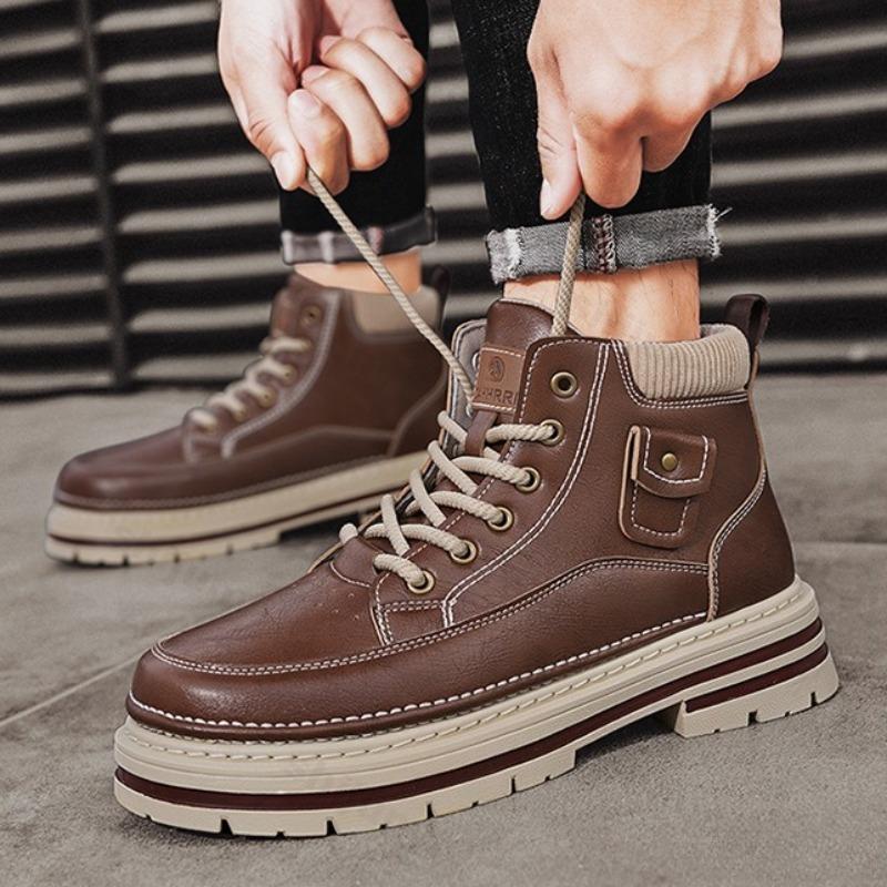 Мода 2025 Осень Британский Ретро Высокий Верх Толстая Подошва Повседневные Короткие Ботинки для Мужчин Модный Тренд Универсальные Удобные Массивные Ботильоны