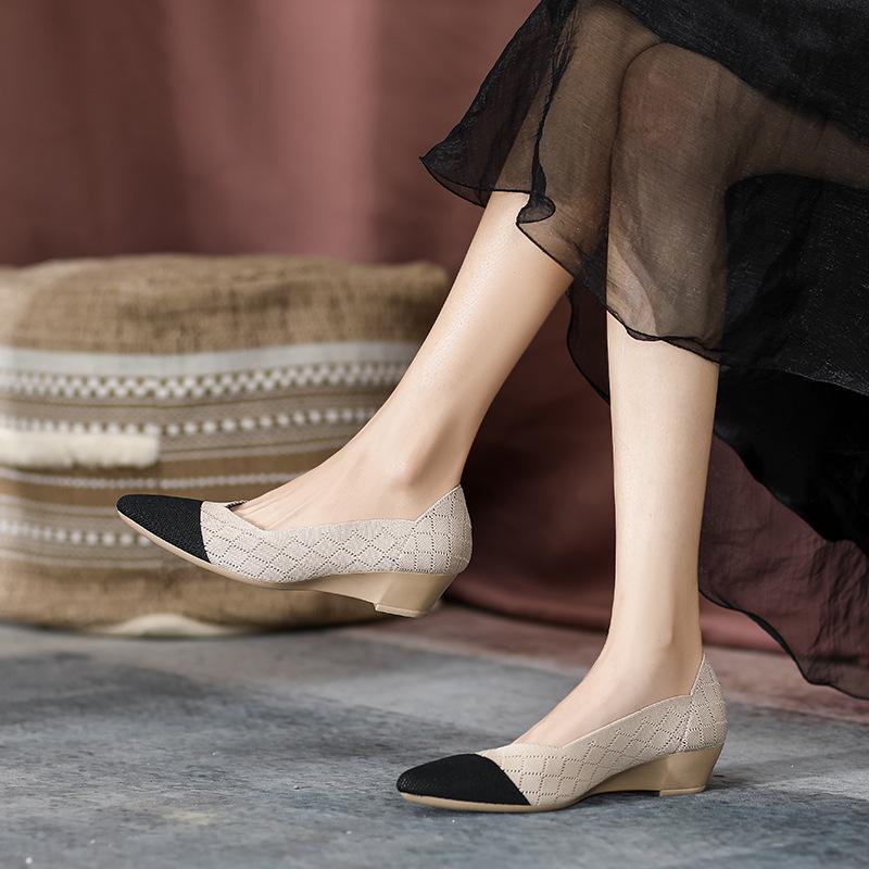 Модная женская обувь на танкетке, вязаная обувь с увеличением высоты, летняя новинка, с острым носком, повседневная обувь-лоферы слипоны, удобная обувь, женская дышащая обувь для ходьбы